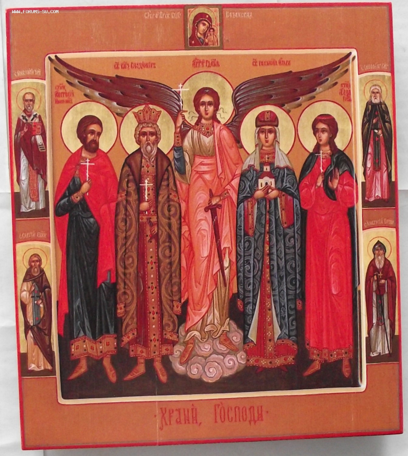 Икона изготовлена по новейшим технологиям,не письмо,не полиграфия,не наклейка,не накатка,а рисунок краской на основе камня по левкасу,с добавлением ионов серебра,для предотвращения образования плесени,чтобы не было изменения цвета со временем и от попадания прямых солнечных лучей,добавлен фотоэлемент,доска сухая,ангарская сосна.