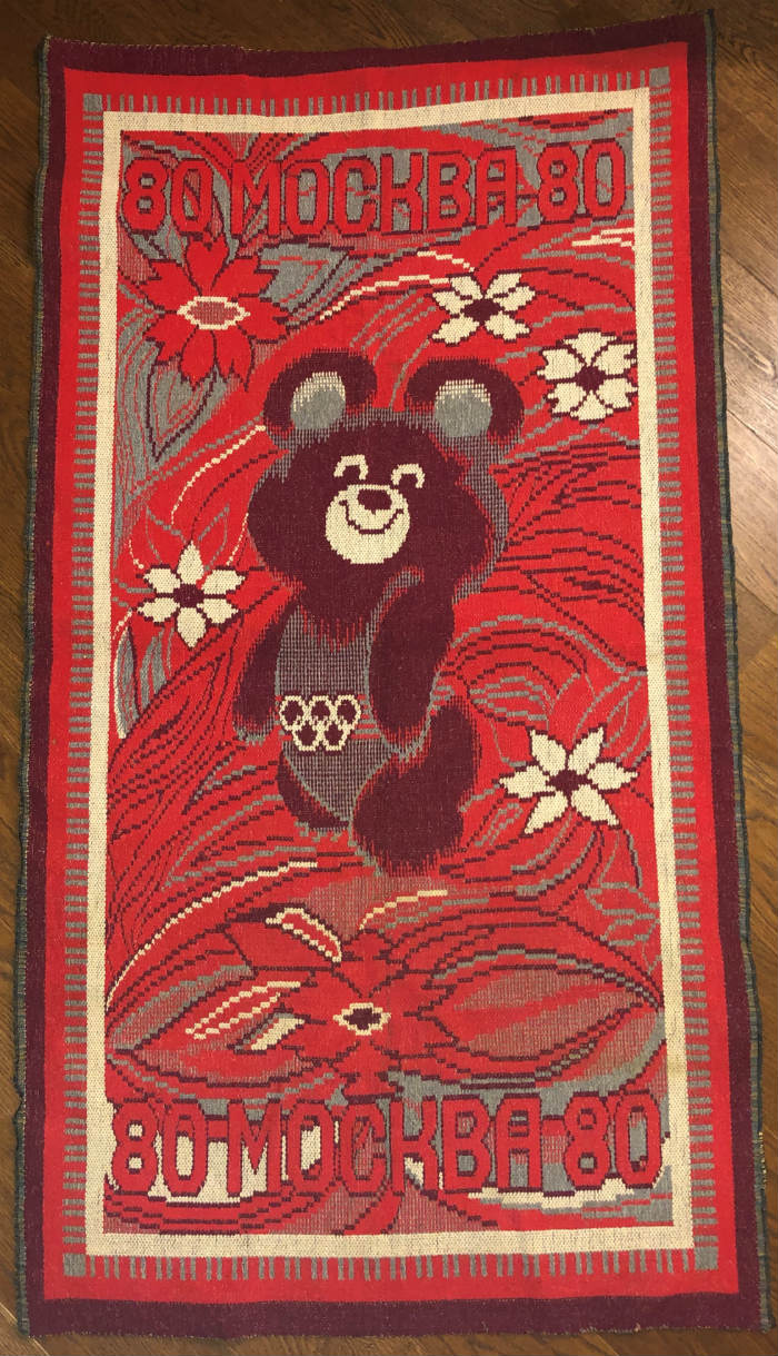 Ковер настенный Олимпийский Мишка. Производство СССР. Размер 150х83 см. Оригинал.
