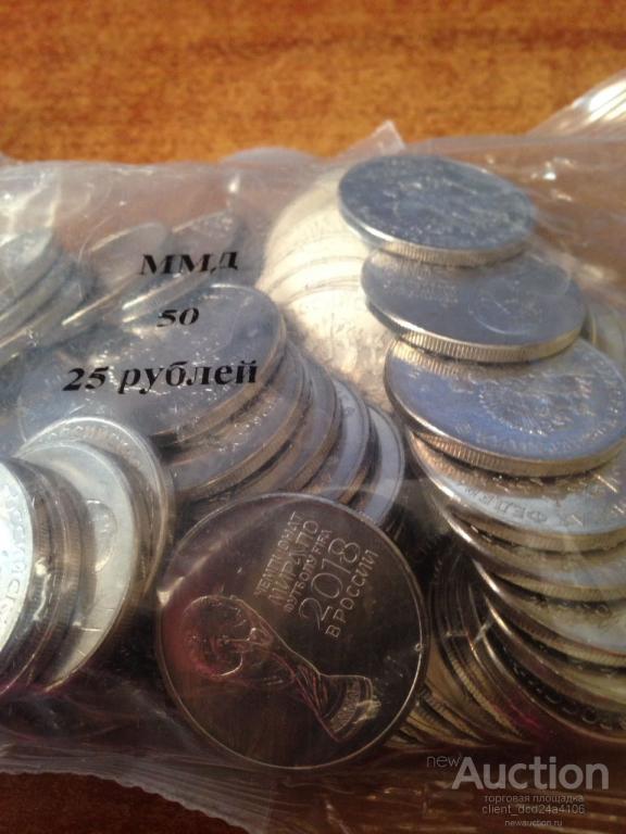 25 рублей Футбол ЧМ серия 1,2,3 цена 1 шт. 29 руб. цена за 50 шт.-26 руб. (мешок не вскрывался)