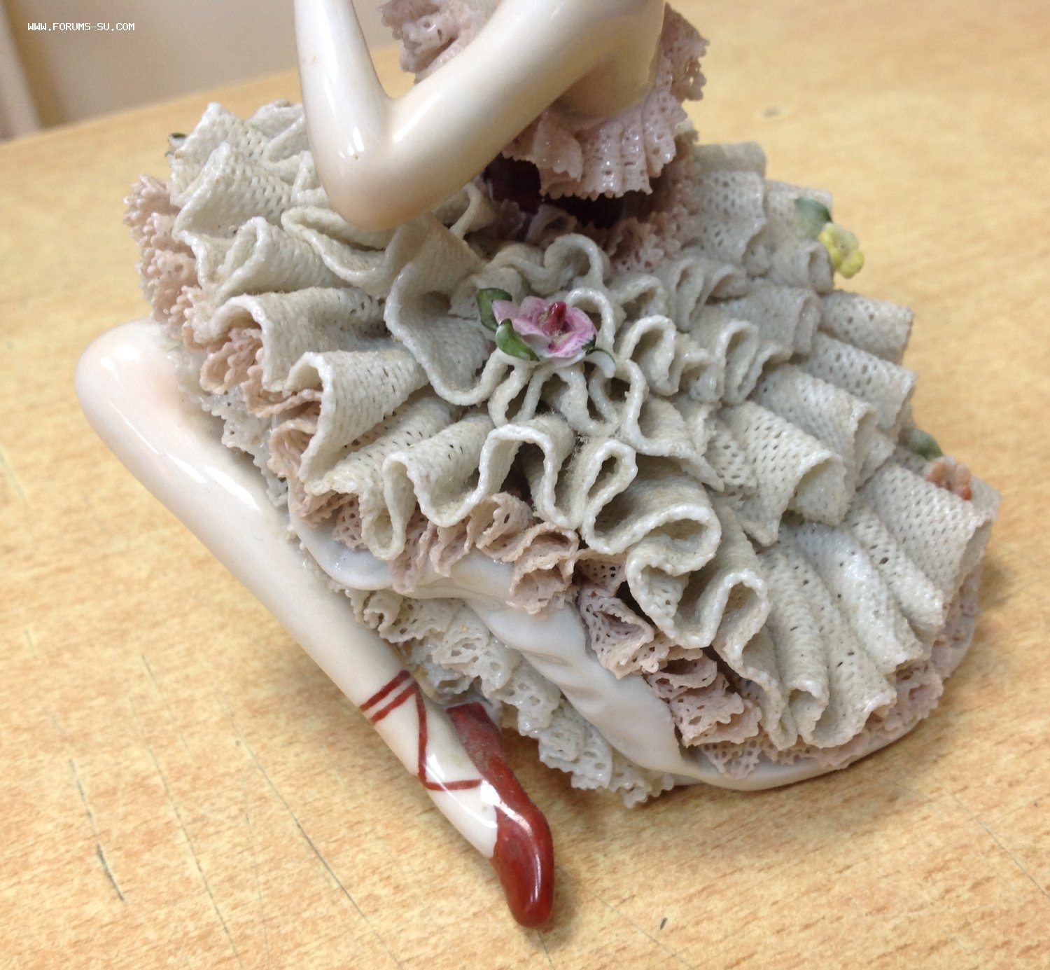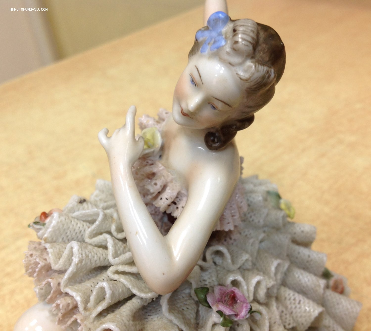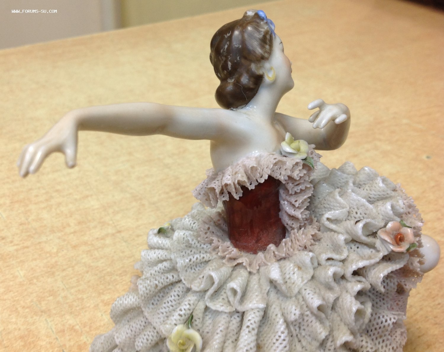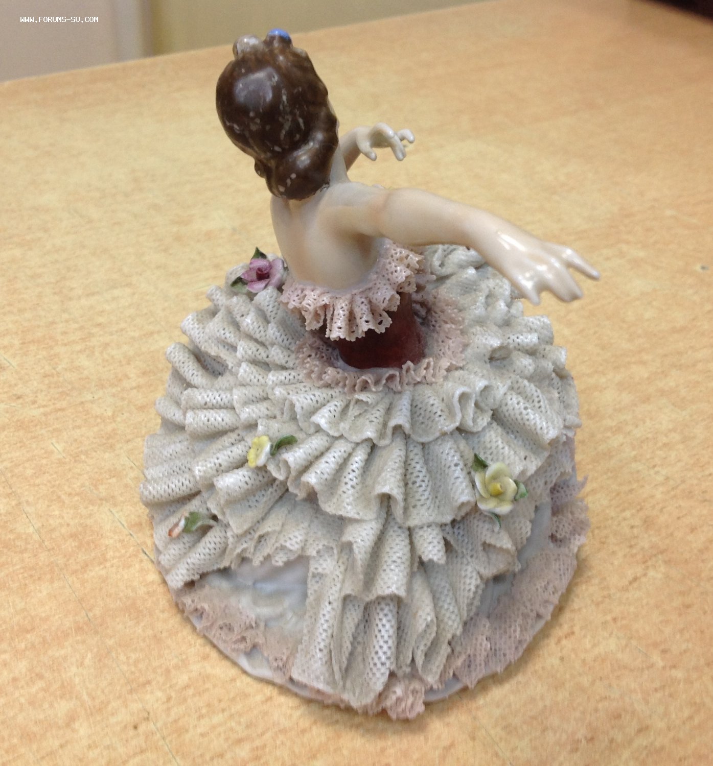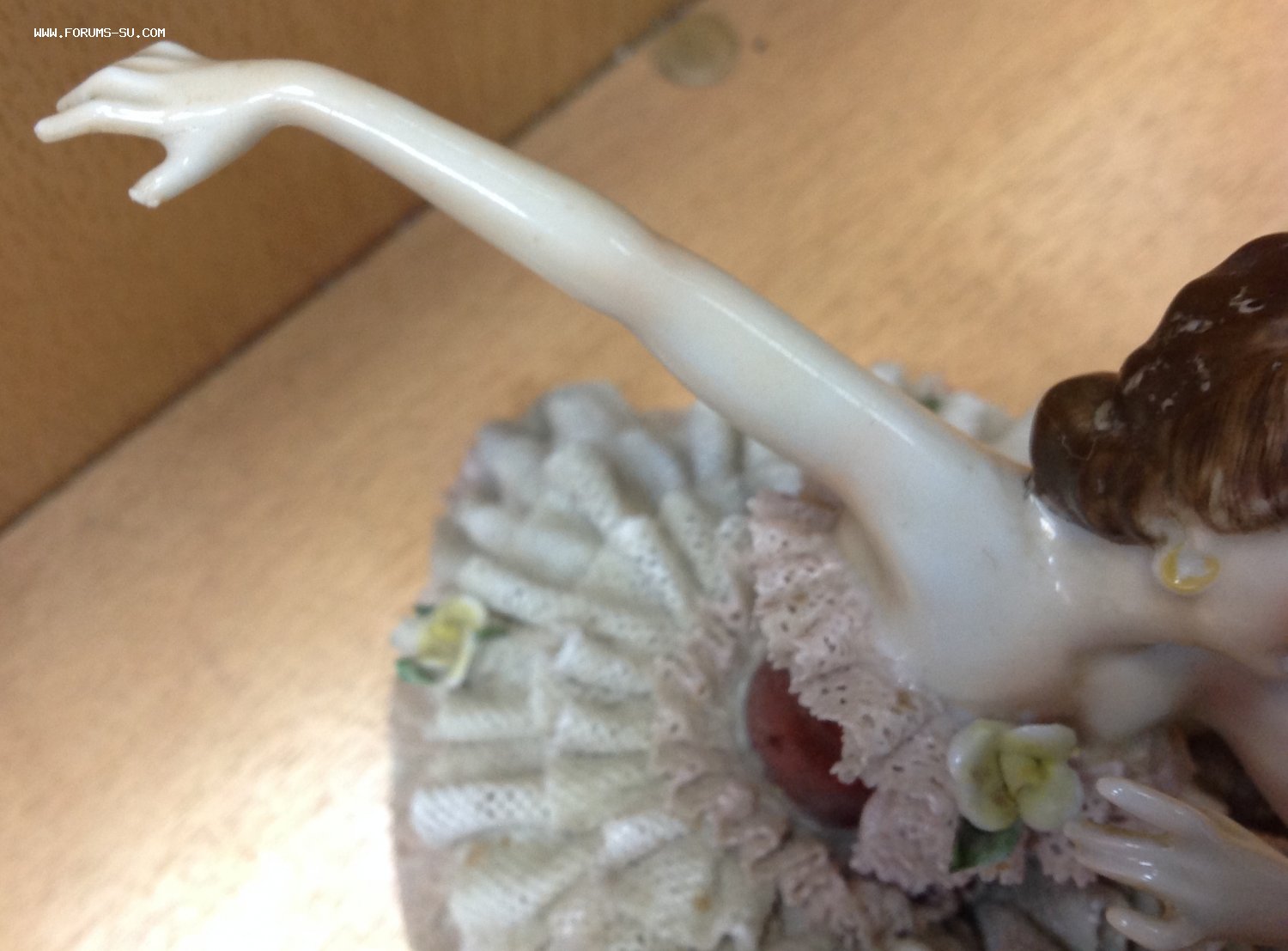 Высота 12,5 см. Пальчики целые-один непролив фабричный считаю, ну и куда без них-ажур есть недостатки. Печная трещина на основании.А так можно сказать приятное состояние