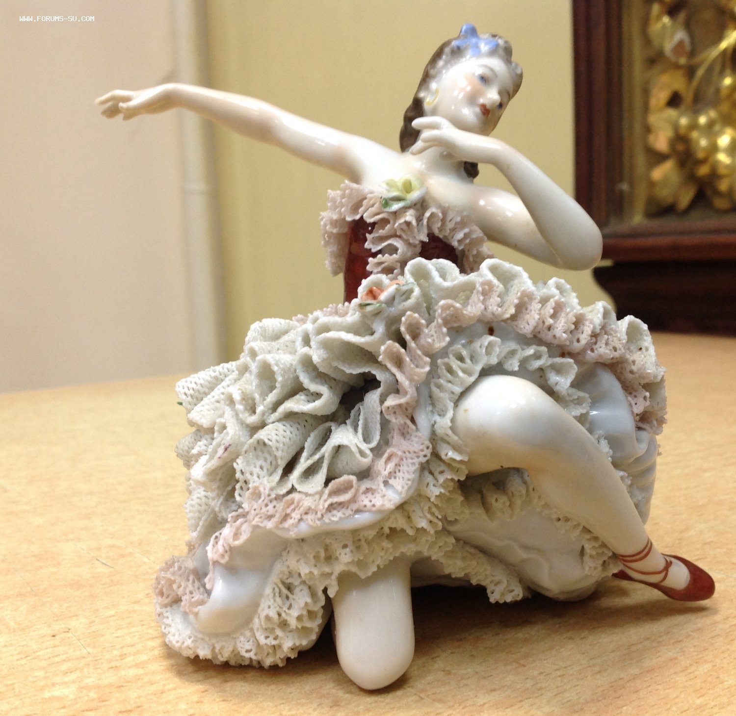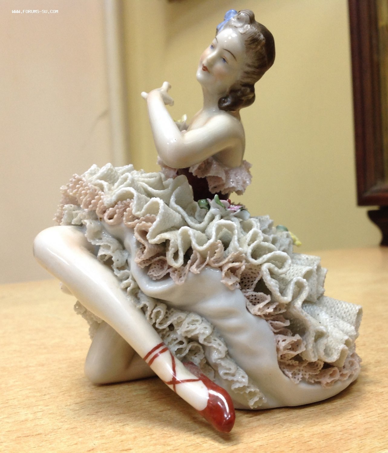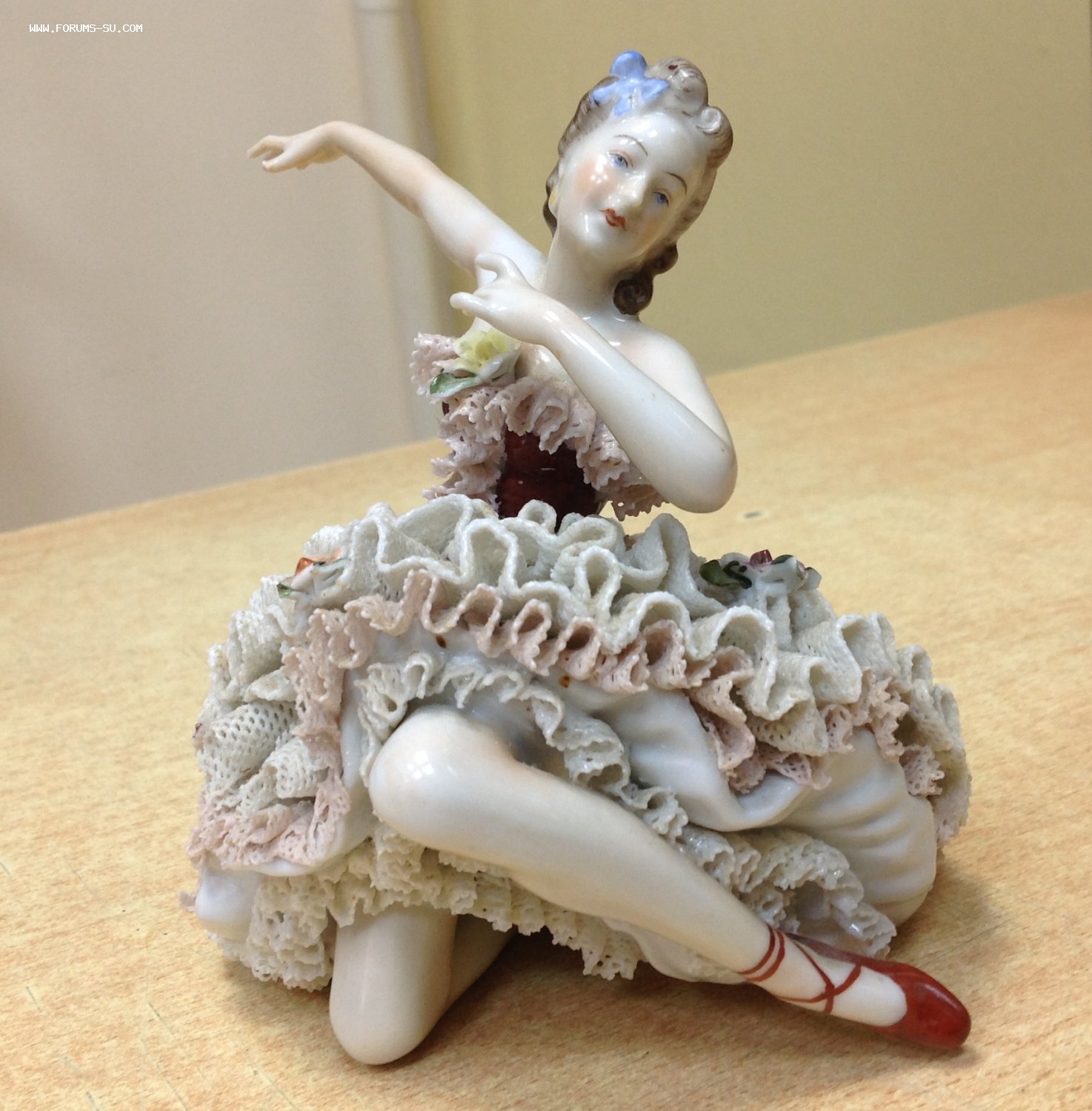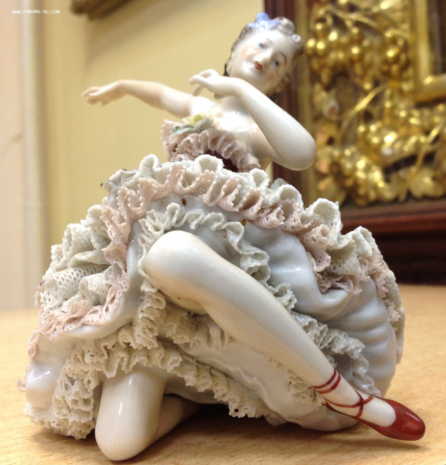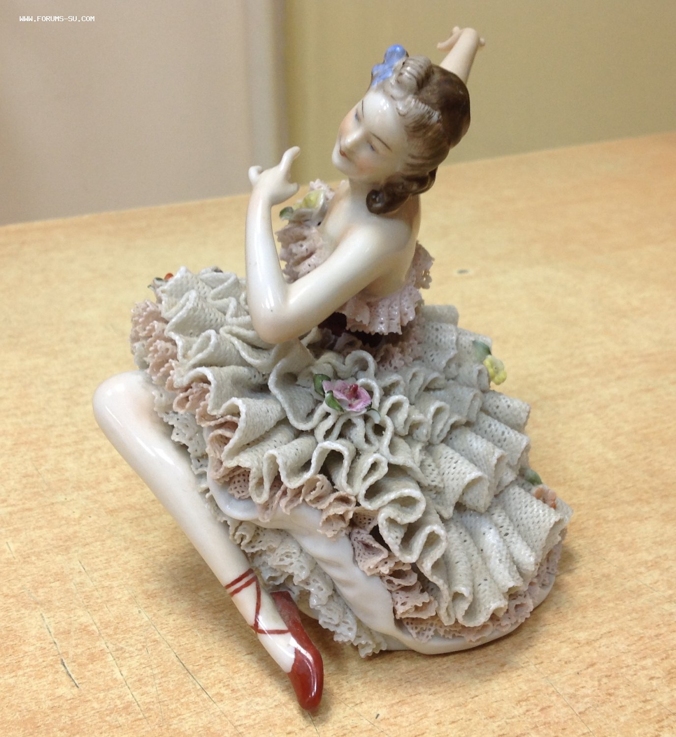 Высота 12,5 см. Пальчики целые-один непролив фабричный считаю, ну и куда без них-ажур есть недостатки. Печная трещина на основании.А так можно сказать приятное состояние