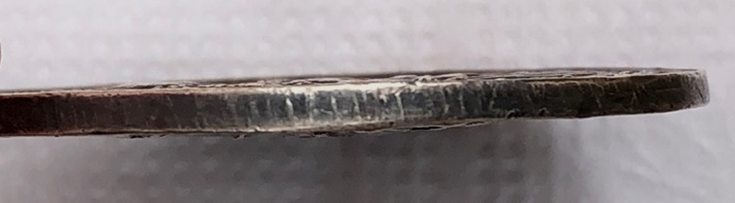 В верхней части медали , между 11 и 12 ч., заделано небольшое отверстие.