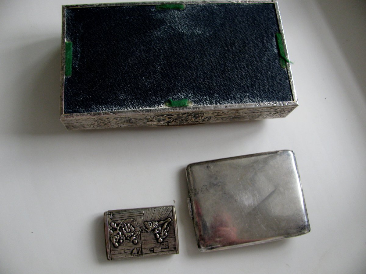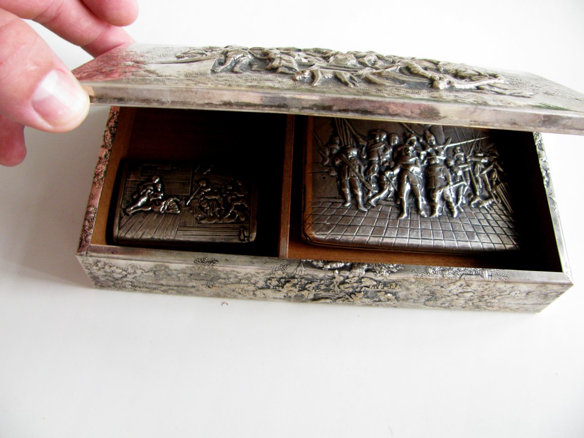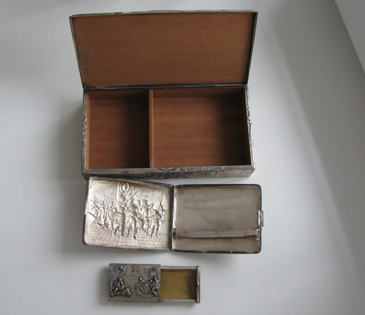 набор 30х годов. шкатулка под сигары, портсигар и спичечница.