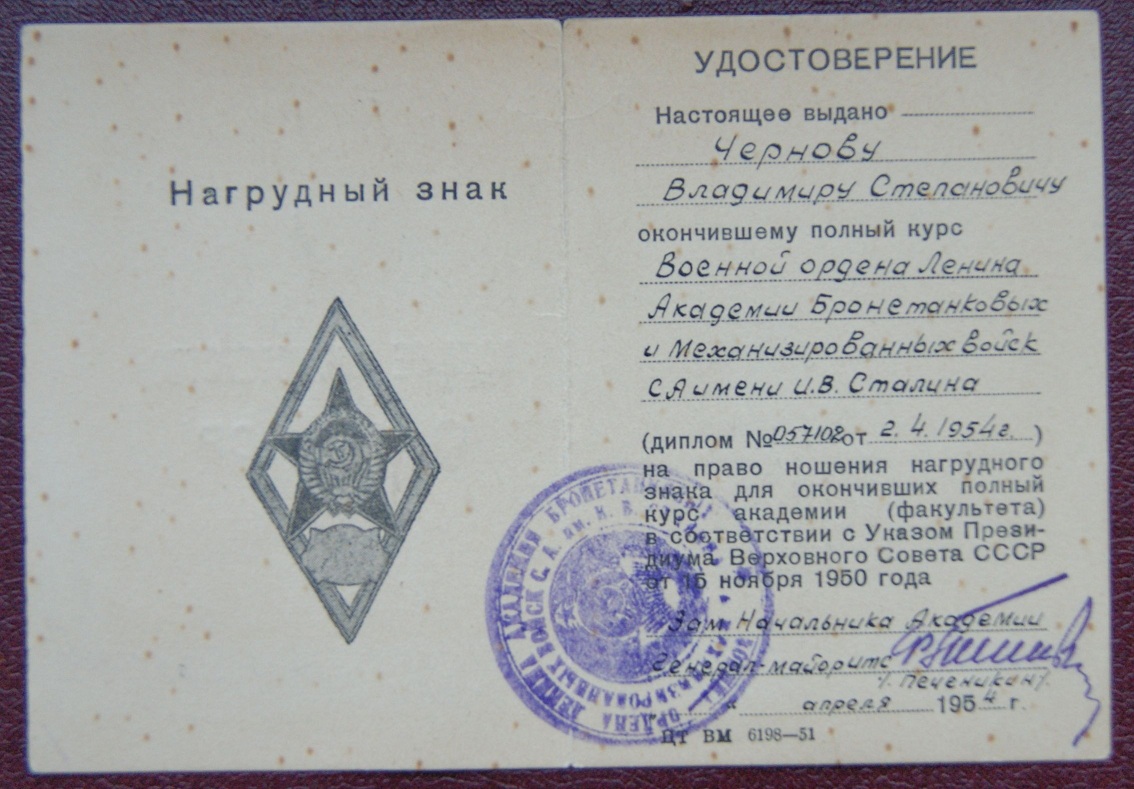 Удостоверение к ромбу ВАБронетанк. и Мех. войск им. Сталина garry15 - 13 апр 2019 18:38.44 × Мини профиль пользователя garry15 Сообщения: 3678 Зарегистрирован: 05 авг 2011 14:55.43 Статус: Не в сети - 13 апр 2019 18:38.44 #6326366