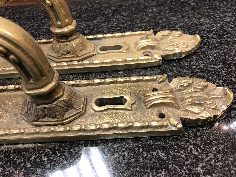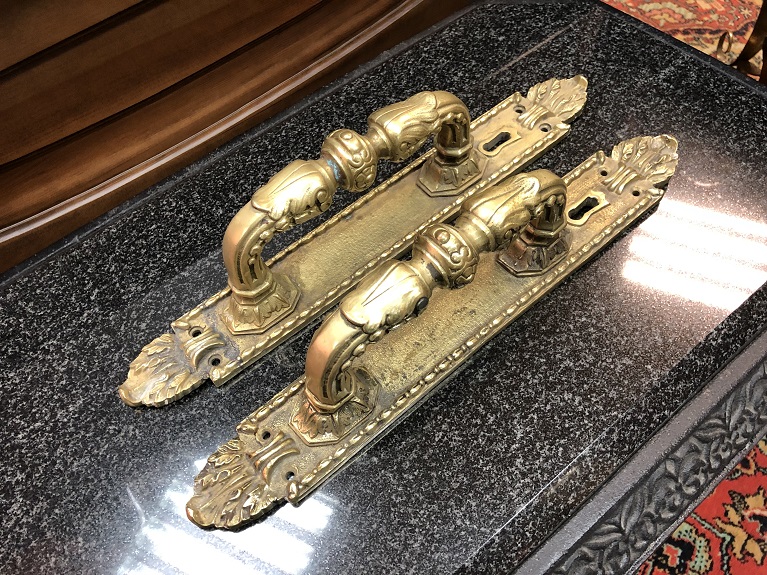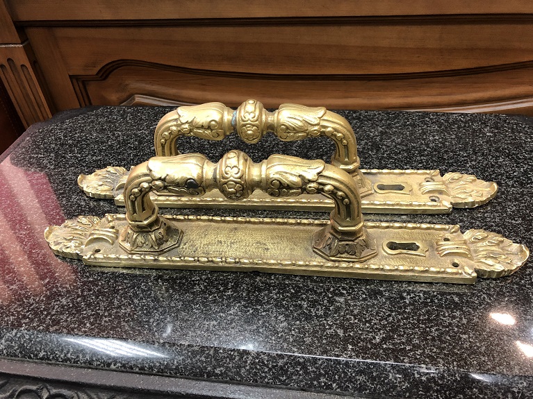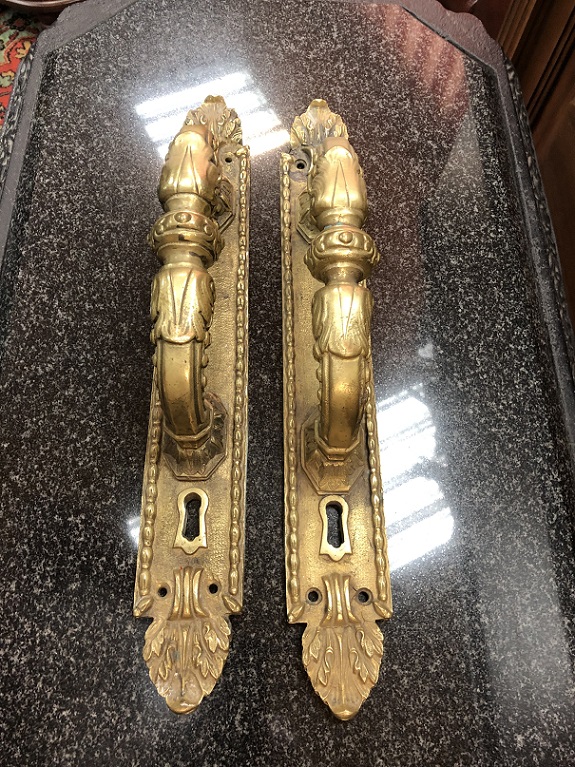 Парные дверные ручки-накладки.