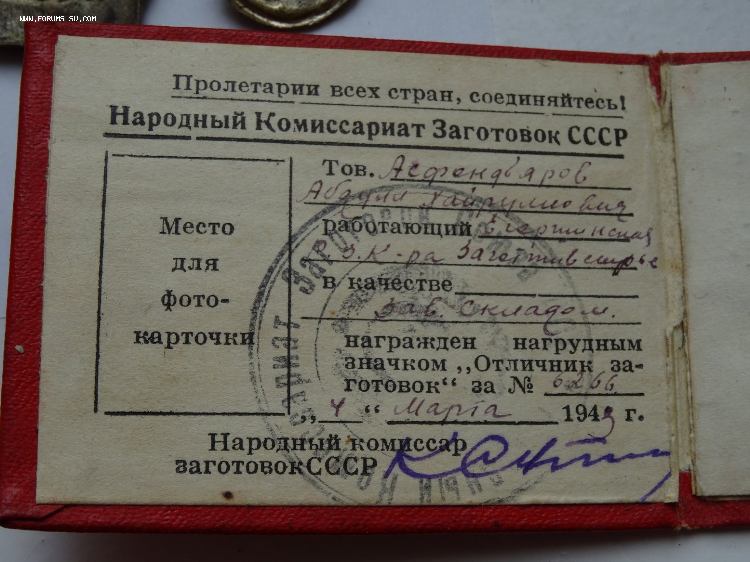 Нарком заготовок СССР с документом и-г-о-р-ь - 29 апр 2019 23:57.33 × Мини профиль пользователя и-г-о-р-ь Сообщения: 1381 Зарегистрирован: 05 июн 2013 08:20.54 Статус: Не в сети - 29 апр 2019 23:57.33 #6331218 В продаже знак Наркомзаг СССР на документе. В правом нижнем углу есть скол эмали и на звездочке. Мпц 25 т.р Фото