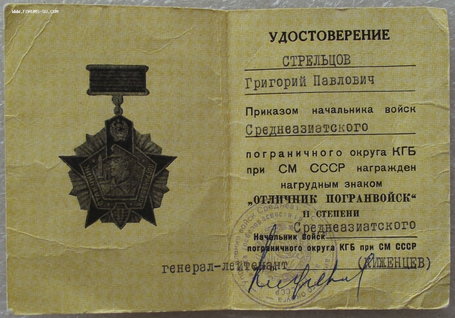 кавалер:генерал-лейтенант Стрельцов Григорий Павлович, зам.командующего войсками округа по вневойсковой подготовке-начальник отдела вневойсковой подготовки округа/пом.командующего по ВУЗам и вневойсковой подготовке ТуркВо