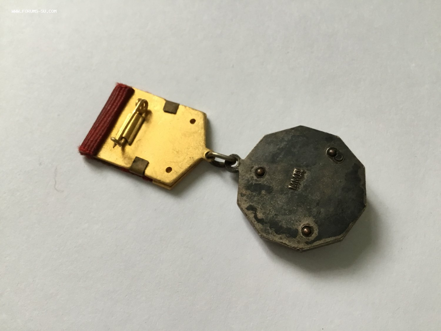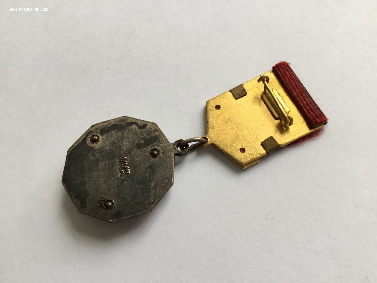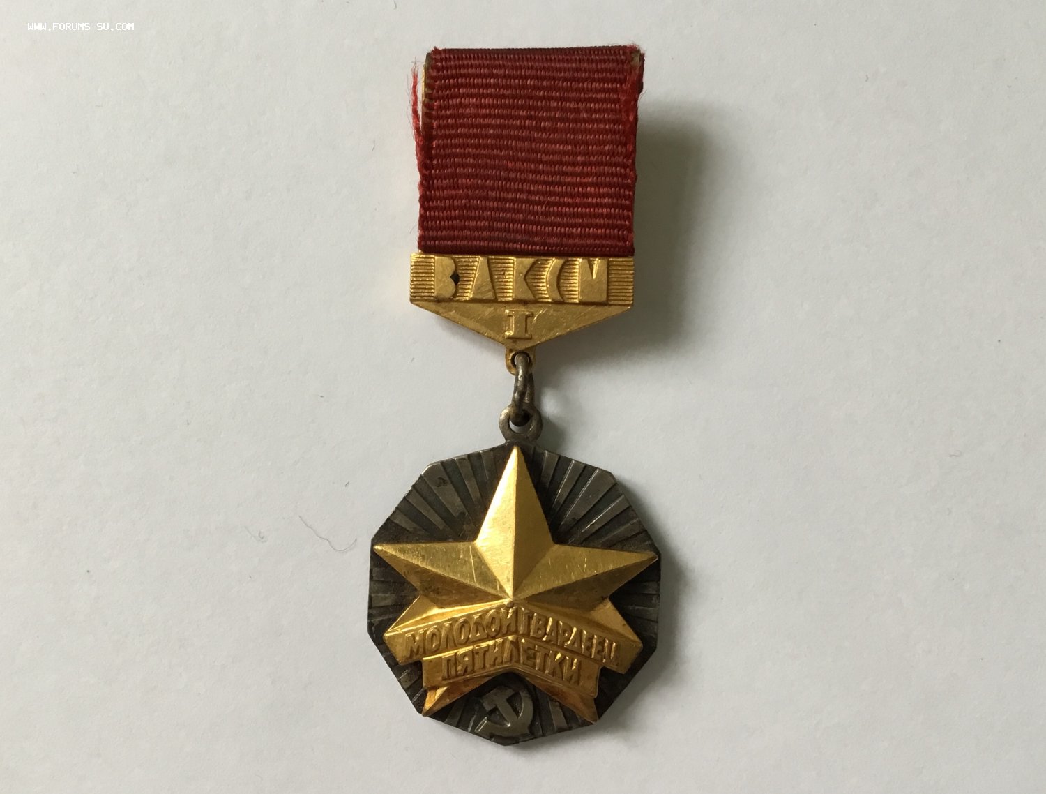 Единственный раз попался подобный знак. Целый ряд знаков ЦК ВЛКСМ изначально, после утверждения, выпускался в усложнённом варианте. Была накладка на колодку, которая крепилась заклёпками. Эти тиражи были крайне незначительными, и был сделан переход знаков комсомола на более упрощённую модель. Колодки уже стали цельноштампованными, а до этого, паянными. На данном знаке основа колодки с подготовленными отверстиями для заклёпок, как на самых первых знаках. А сама накладка «ВЛКСМ I” уже паянная, и без отверстий под заклёпки.