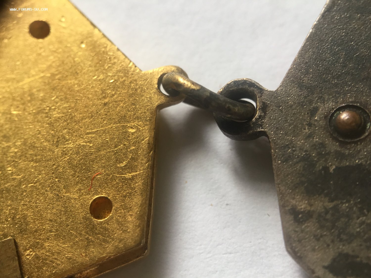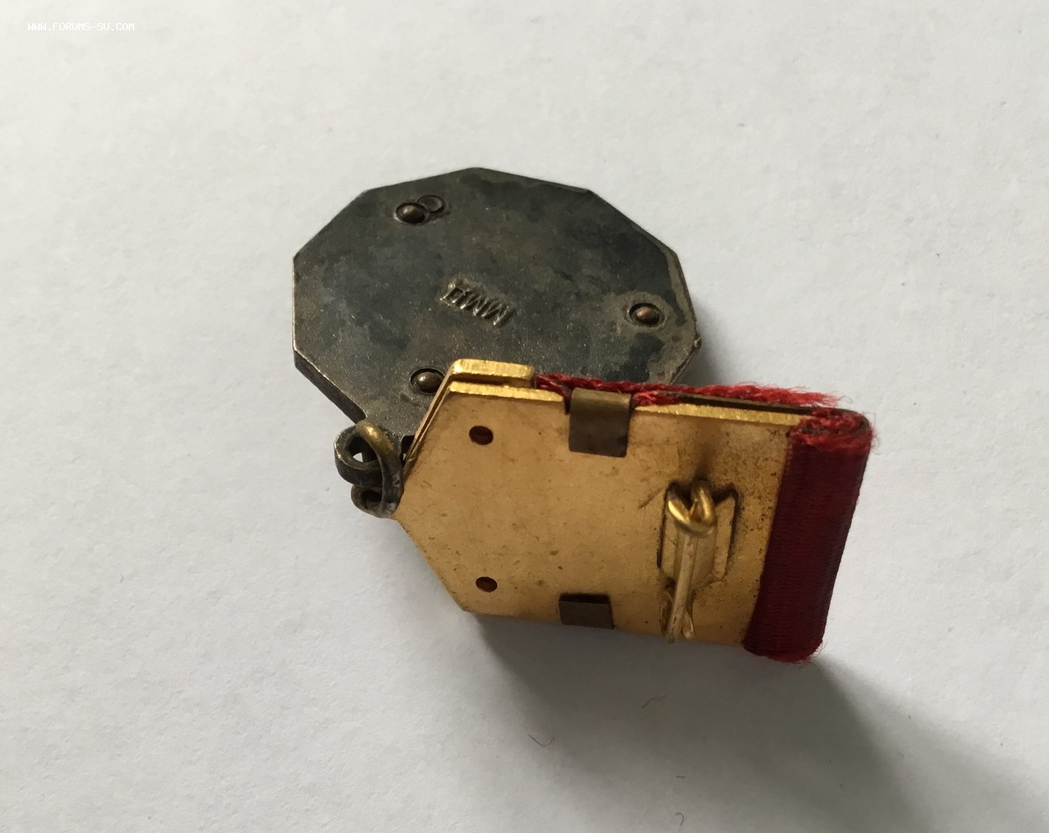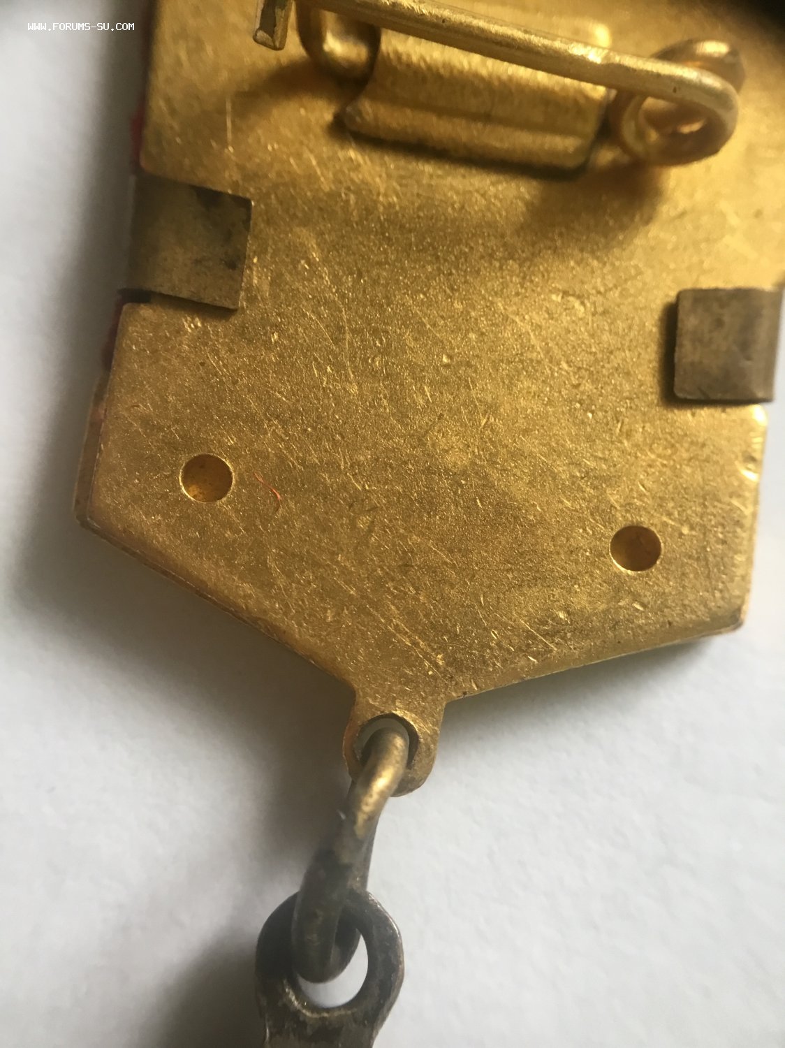 Единственный раз попался подобный знак. Целый ряд знаков ЦК ВЛКСМ изначально, после утверждения, выпускался в усложнённом варианте. Была накладка на колодку, которая крепилась заклёпками. Эти тиражи были крайне незначительными, и был сделан переход знаков комсомола на более упрощённую модель. Колодки уже стали цельноштампованными, а до этого, паянными. На данном знаке основа колодки с подготовленными отверстиями для заклёпок, как на самых первых знаках. А сама накладка «ВЛКСМ I” уже паянная, и без отверстий под заклёпки.