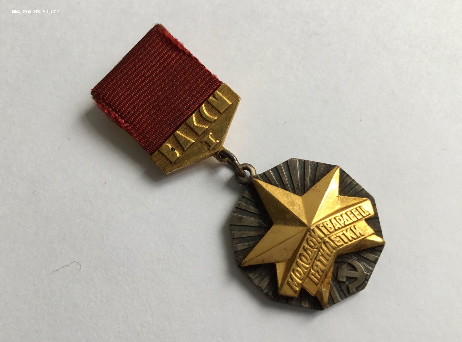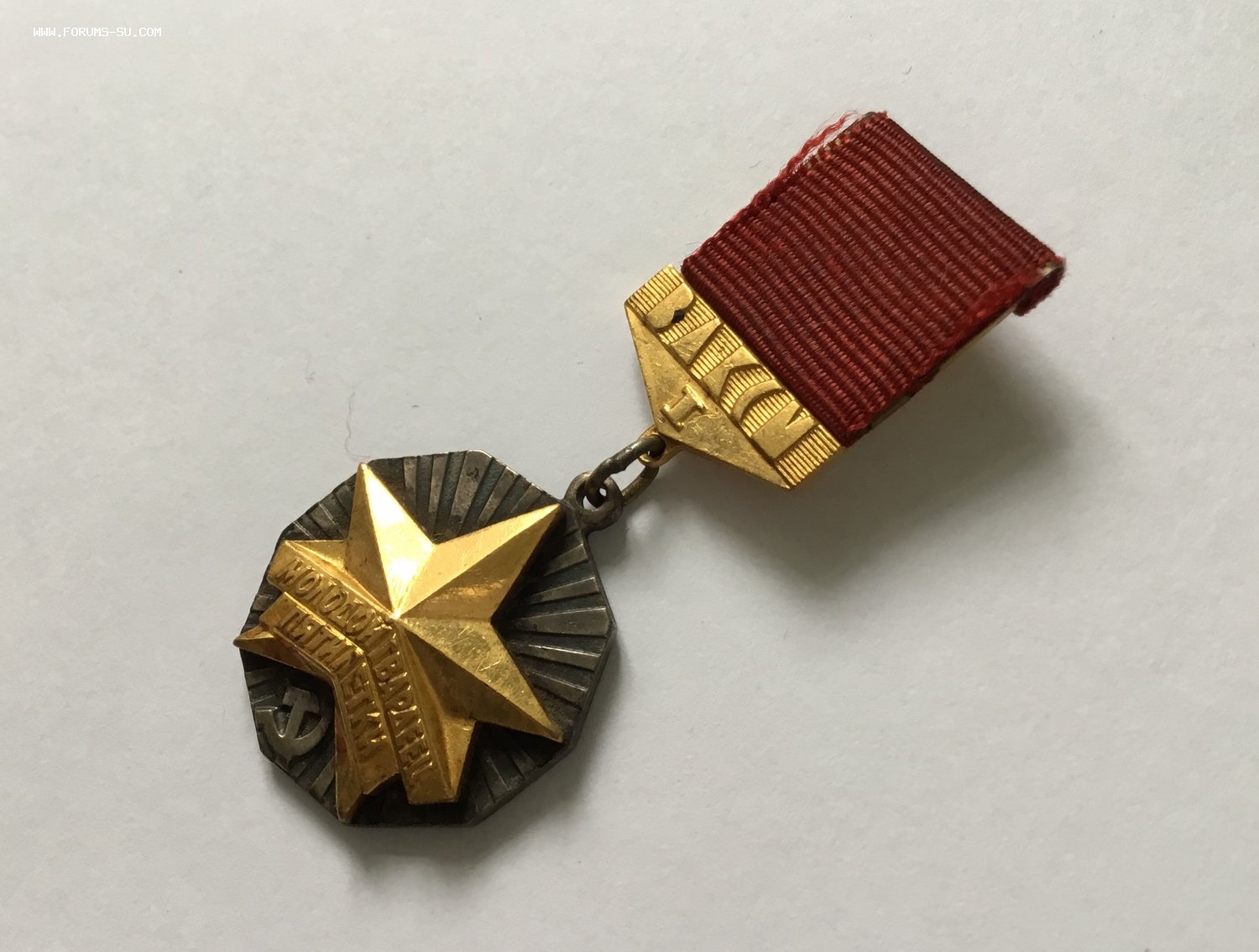 Молодой гвардеец пятилетки, золотой. Томпак, позолота, оксидировка, заводская пайка промзвена.