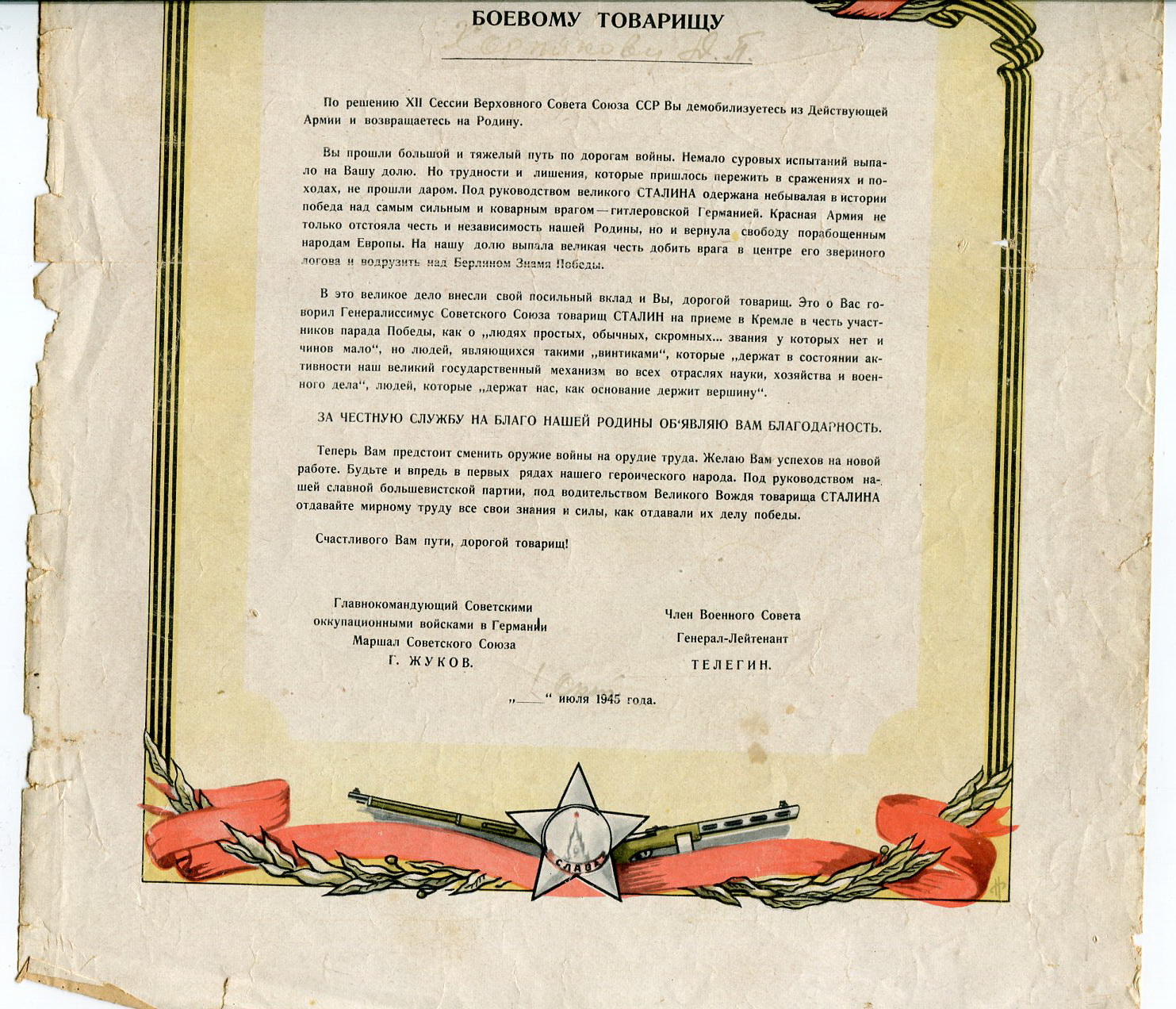 Грамота участнику взятия Берлина. Подписи: Катуков, Попель. Электрик - 12 май 2019 12:33.26 × Мини профиль пользователя Электрик Сообщения: 3199 Зарегистрирован: 07 апр 2009 19:01.13 Статус: Не в сети - 12 май 2019 12:33.26 #6334201 Состояние на скане. По РФ. Фото За доставку несу ответственность только на сумму страховки.