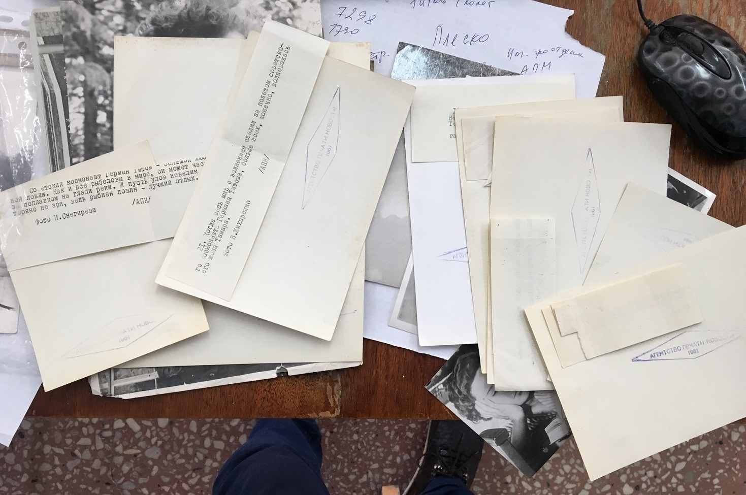 На архиве Титова приклеены бумажечки с пояснениями где он и что делает.