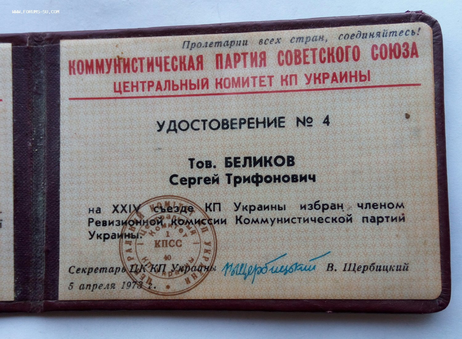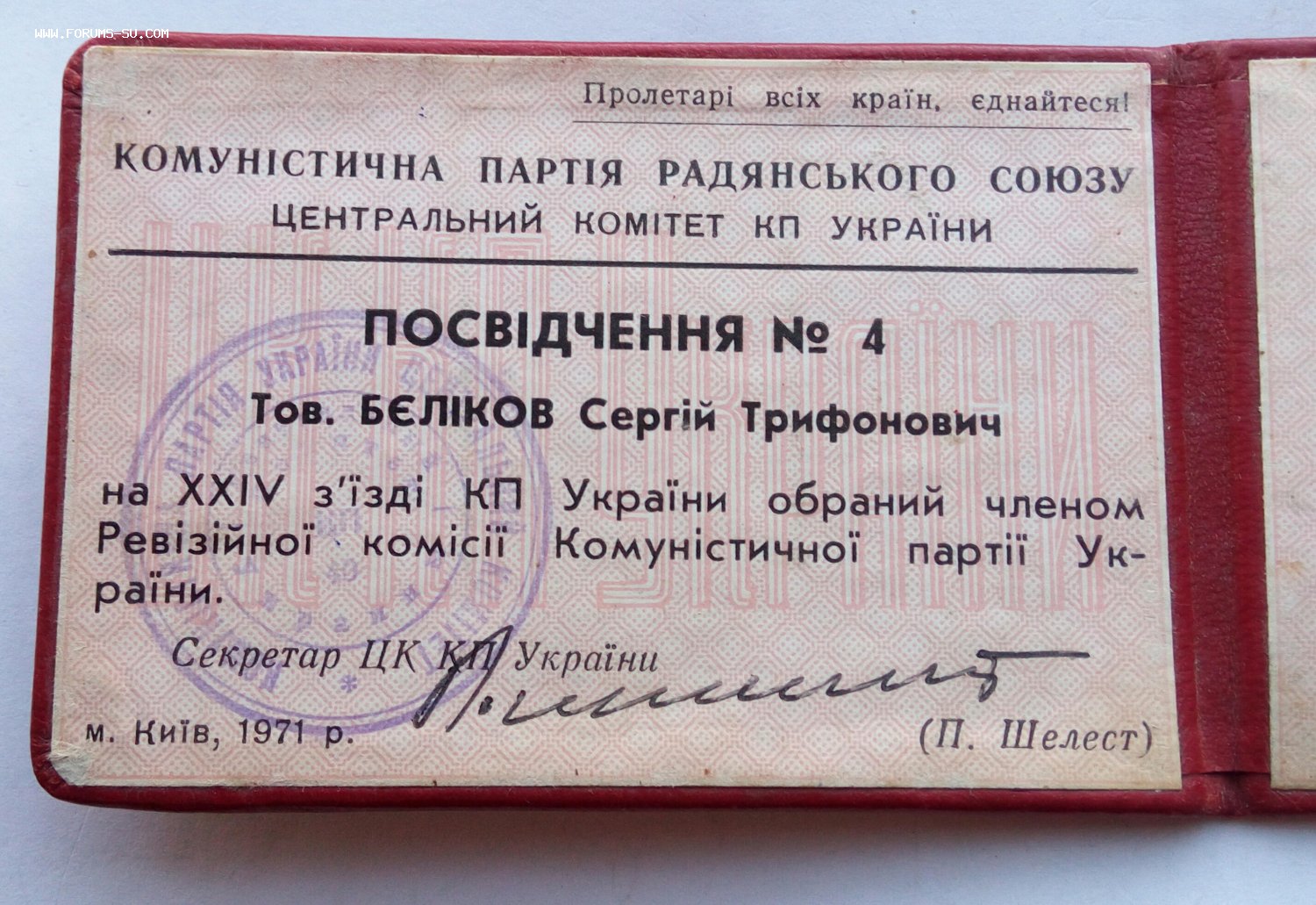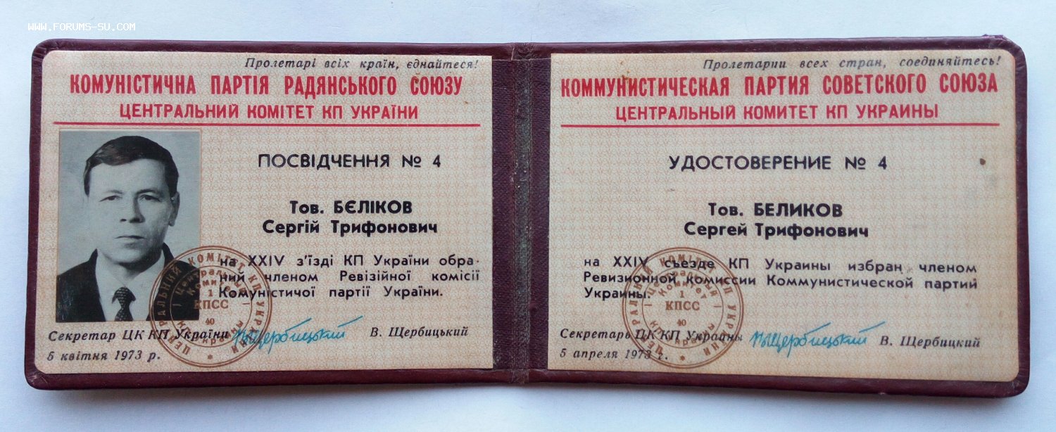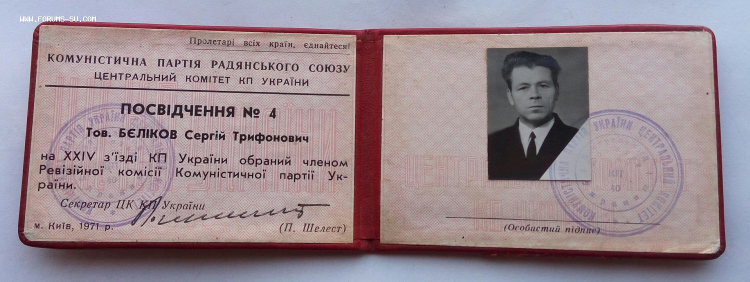 Подпись на удостоверении Секретаря ЦК КП Украины П.Шелеста.