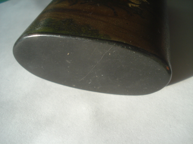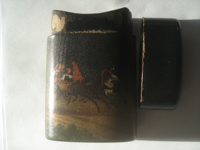 Небольшая утрата чёрного лака по ободу крышки и на закрываемой части.