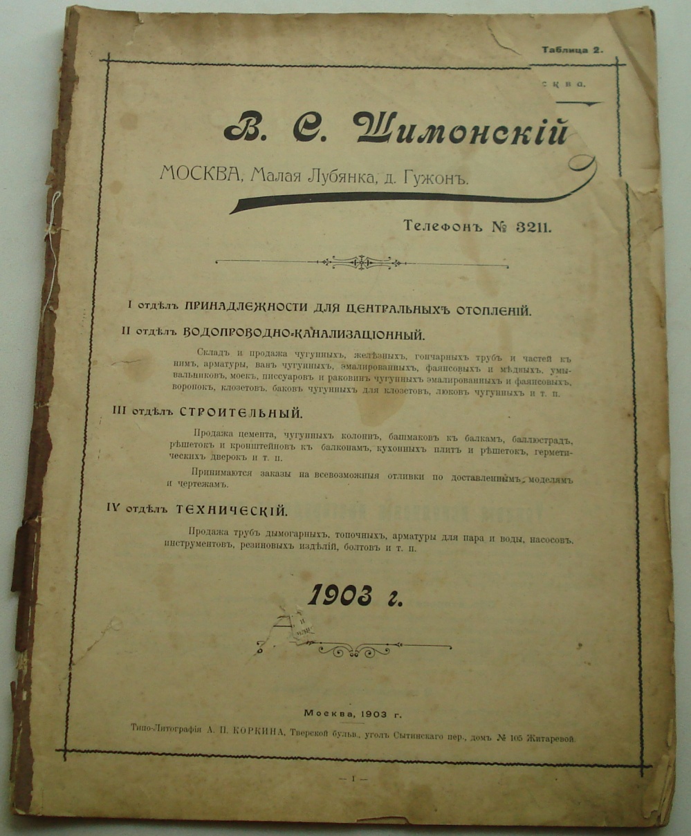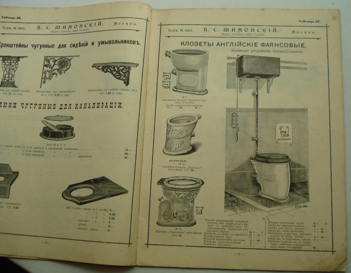 Прейс-курант В.С. ШИМОНСКИЙ ... 1903 г. Сантехника unker7 - 05 июн 2019 19:53.27 × Мини профиль пользователя unker7 Сообщения: 2658 Зарегистрирован: 09 май 2005 21:44.35 Откуда: Россия Статус: Не в сети - 05 июн 2019 19:53.27 #6340848 ВСЕ на фото... Размер 24 х 32 см. ... 54 стр.от 5000 р. Фото отправку оплачивает покупатель.