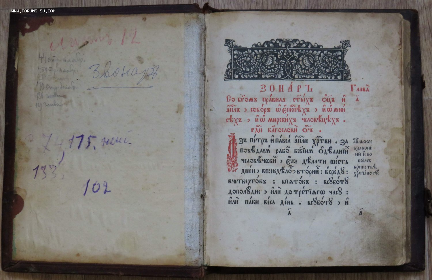 Дореволюционная старообрядческая книга ЗОНАР на старославянском языке, переплет кожа и дерево. Рассказывает о том, как должна протекать жизнь старообрядца, свод правил и законов старообрядческой жизни.