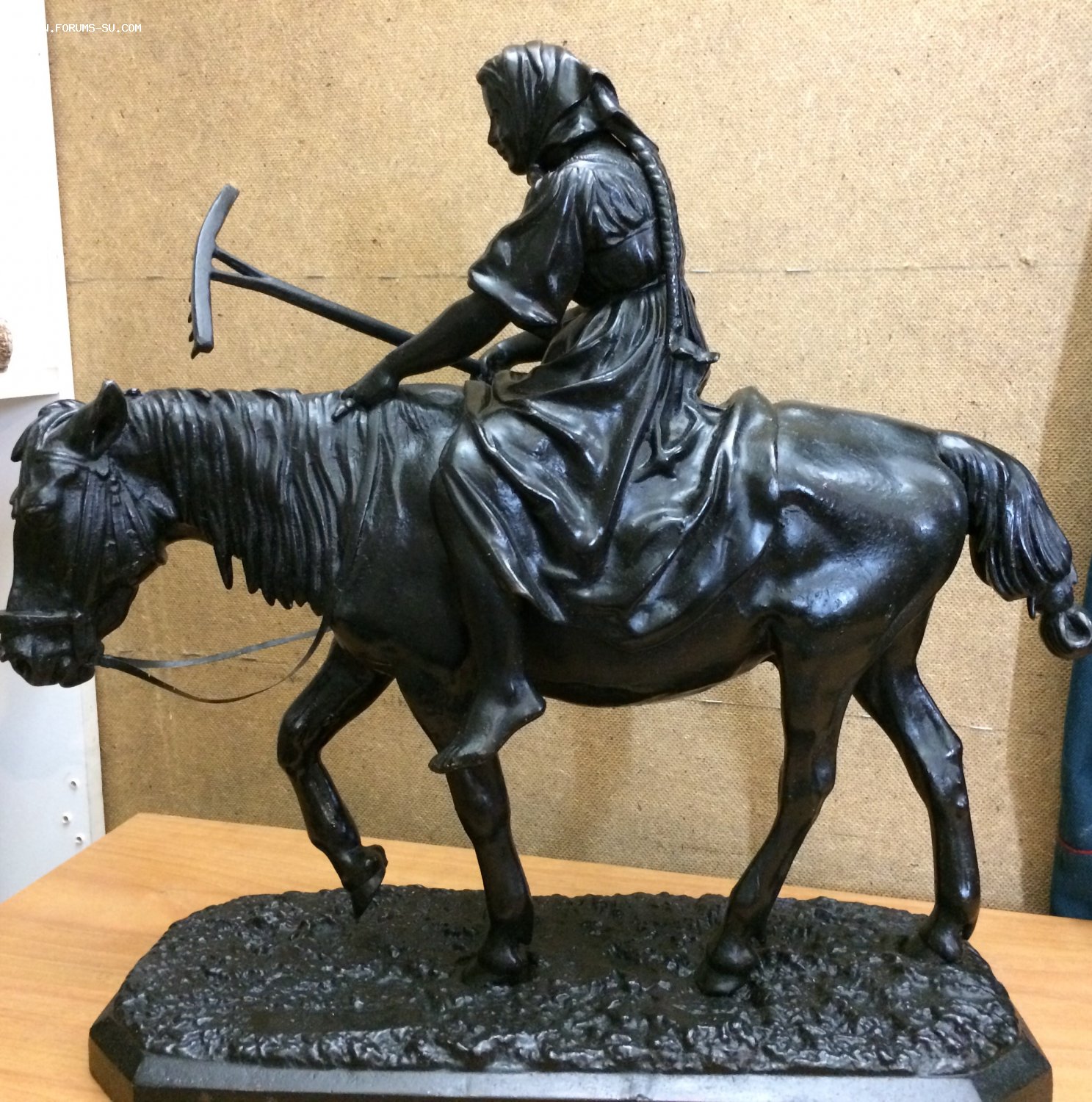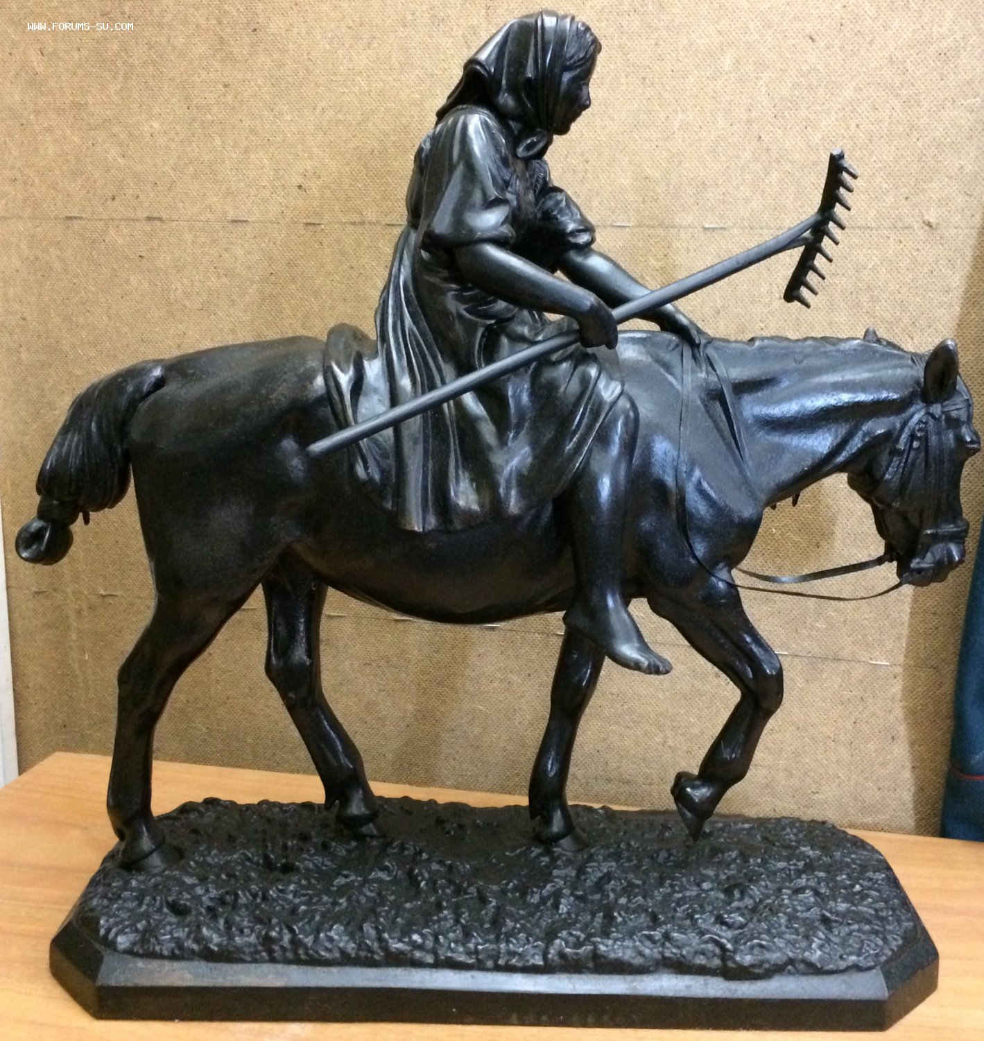 Скульптура «Крестьянка с граблями на лошади (раб. Либерих) КУСА до 1955г. Большая