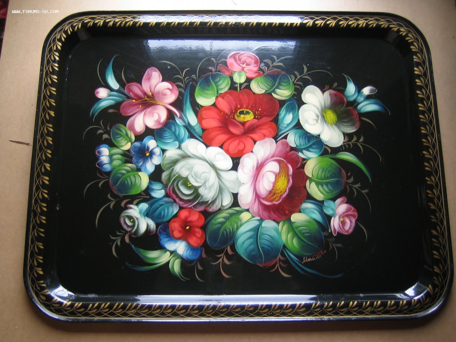 Начало 80 х. прошлого века. 45х35 см.Автор Майков,из династии жостовско-федоскинских художников.На обороте,бывший хозяин подноса приклеил брусок для крепежа на стену. МПЦ с моей доставкой почтой по РФ-1300р.