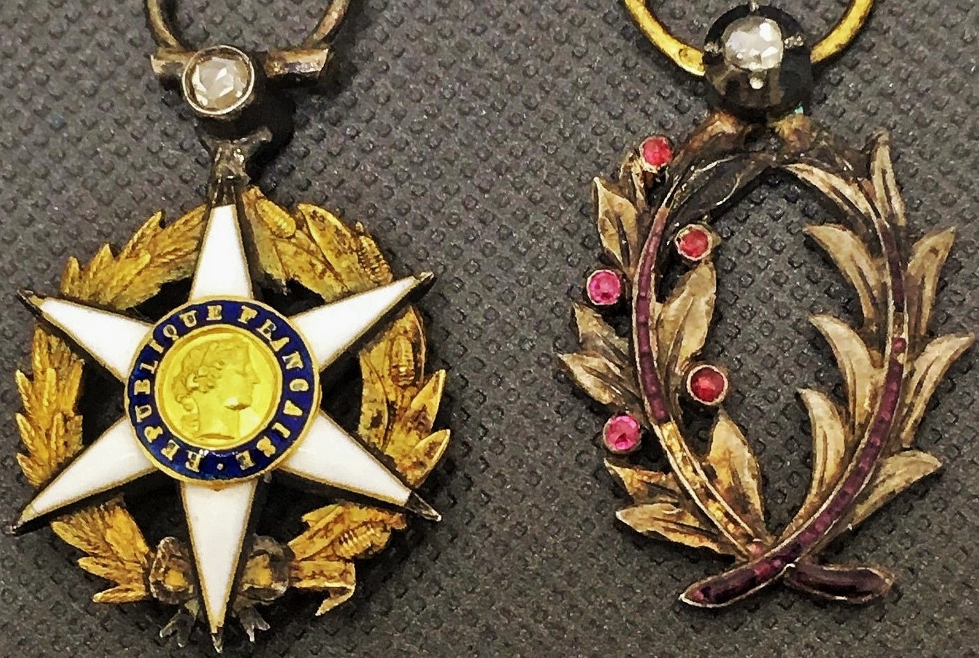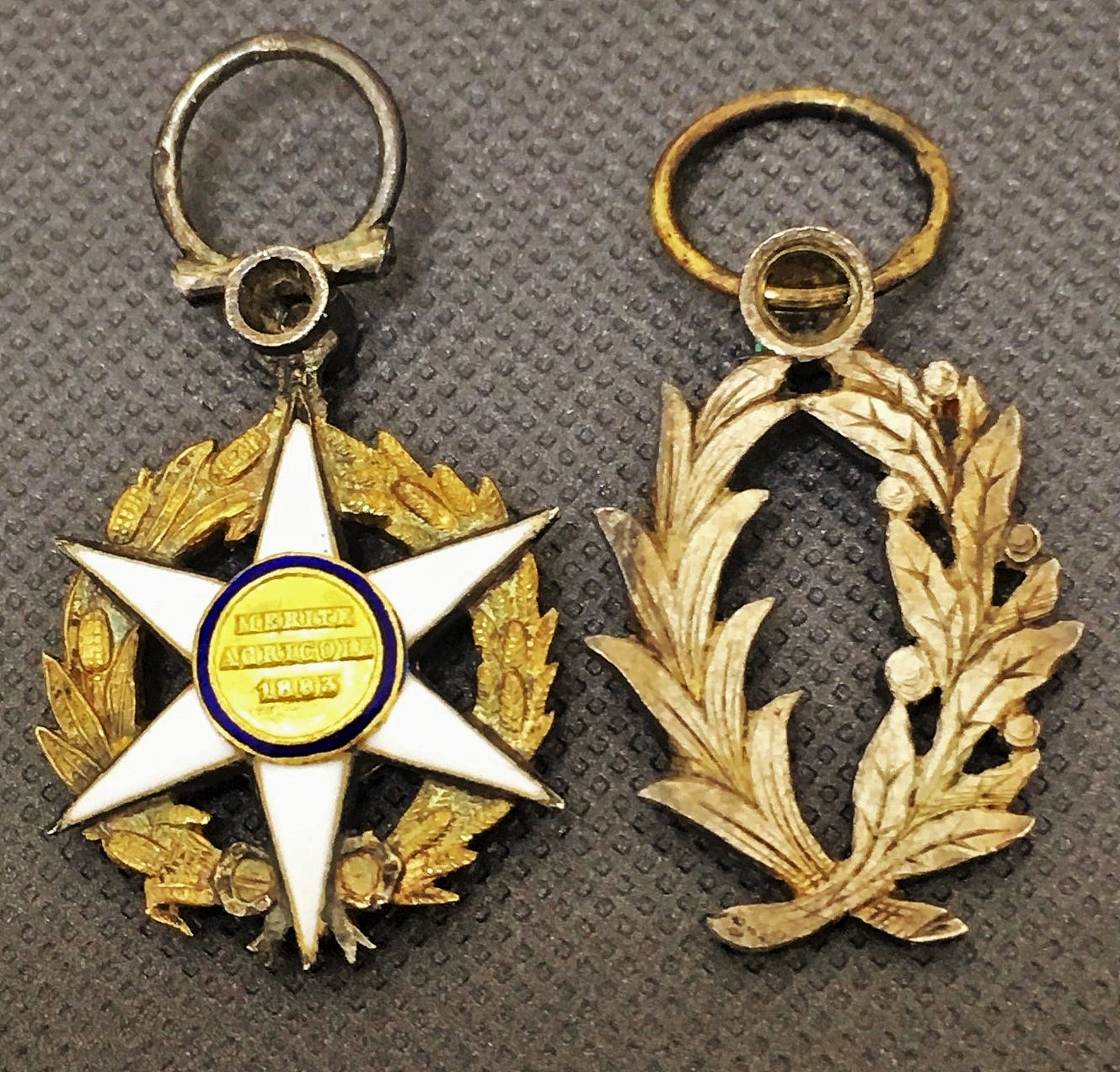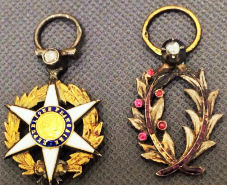 Фрачные ордена Академических пальм и Сельскохозяйственных заслуг. Размеры 26Х13.5 мм и 26Х15 мм. (С кольцами). Серебро, эмаль, позолота, алмазы, рубины. Камни натуральные. Диаметр алмазов примерно по 2 мм. Личная встреча в Москве или почтой по РФ после предоплаты на карту ВТБ (плюс 250 руб.).