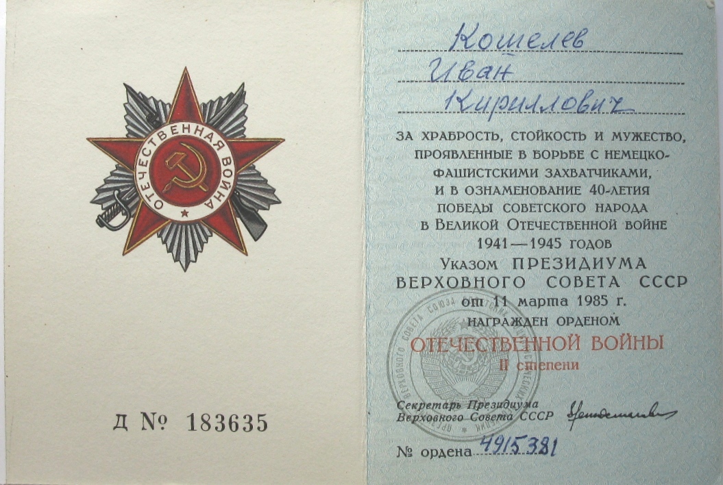 Орденской книжки нет.