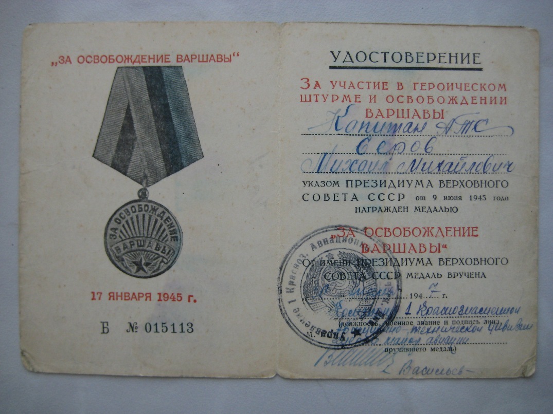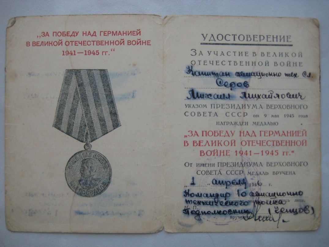 Кавалер:Серов Михаил Михайлович, капитан авиационно-технической службы, начальник отделения боепитания 466-го батальона аэродромного обслуживания 16-й Воздушной армии