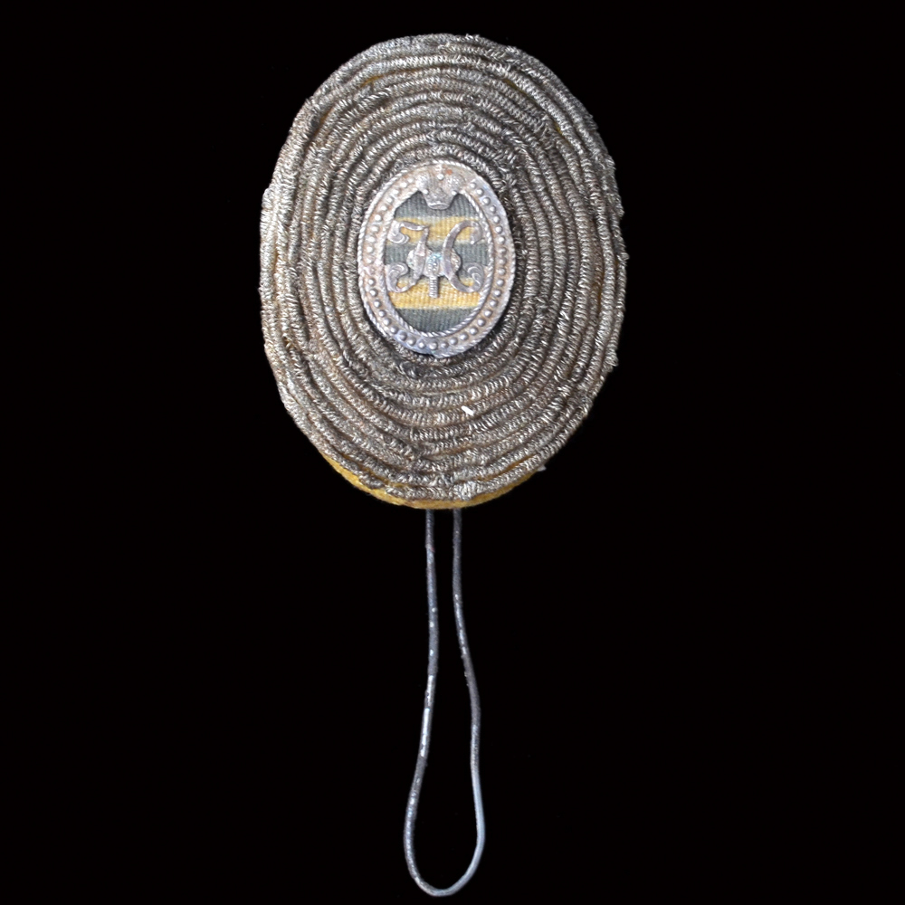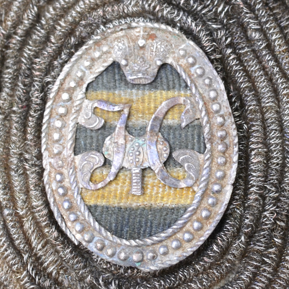 Репейки появились на армейских строевых головных уборах (фетровых шапках и сменивших их киверах) в 1805 г. Первоначально репеек, или «шишка», представлял собой деревянную полусферу, обтянутую сукном двух цветов (центр и ободок), служившую для различия солдат по ротам и батальонам. Несколько позже, когда офицеры получили кивера вместо шляп, появились офицерские репейки, вышитые черным и оранжевым шелком, окантованным по периметру серебряной канителью (у обер-офицеров) или обшитым серебряными блестками (у штаб-офицеров). В центре репейка поверх нитей вышивался серебром императорский вензель. Сзади в деревянную основу вставлялась проволока для крепления к киверу. Изнанка репейка подшивалась черной кожей. Примерно с середины 1810-х гг. репейки стали делать не круглыми, а овальными. В 1828 г. был введен новый образец репейка, высотой около 3 дюймов (76 мм) и высотой примерно 2 ⅛ дюйма (54 мм), предназначенный для офицерских пехотных и гусарских киверов, а также для уланских и казачьих шапок. Вместо вышивки в центре помещался отрезок георгиевской ленты, поверх которого крепился серебряный императорский вензель, отштампованный заодно с овальным картушем. Пространство вокруг картуша у обер-офицеров выкладывалось серебряной канителью, а у штаб-офицеров и генералов – расшивалось серебряными блестками. С изнанки репеек подшивался сукном цвета кивера. В данном случае цвет сукна можно трактовать как выцветший красный или желтый. Таким образом, он мог предназначаться для уланской шапки, гусарского кивера (они, в отличие от пехотных, обтягивались не черным, а цветным сукном) или для меховой казачьей шапки. Подобного типа репейки просуществовали до 15 марта 1855 г. и были заменены металлическими кокардами большого размера. Сегодня подобные знаки различия представляют собой огромную редкость.