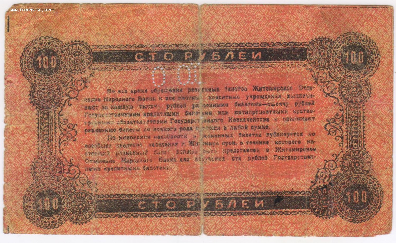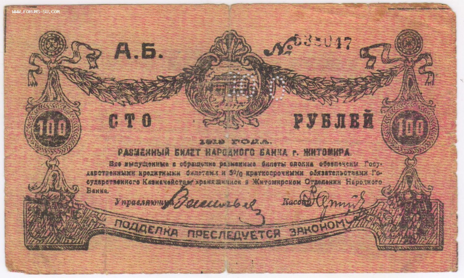 100 рублей 1919 Житомир. Серия АБ 53894