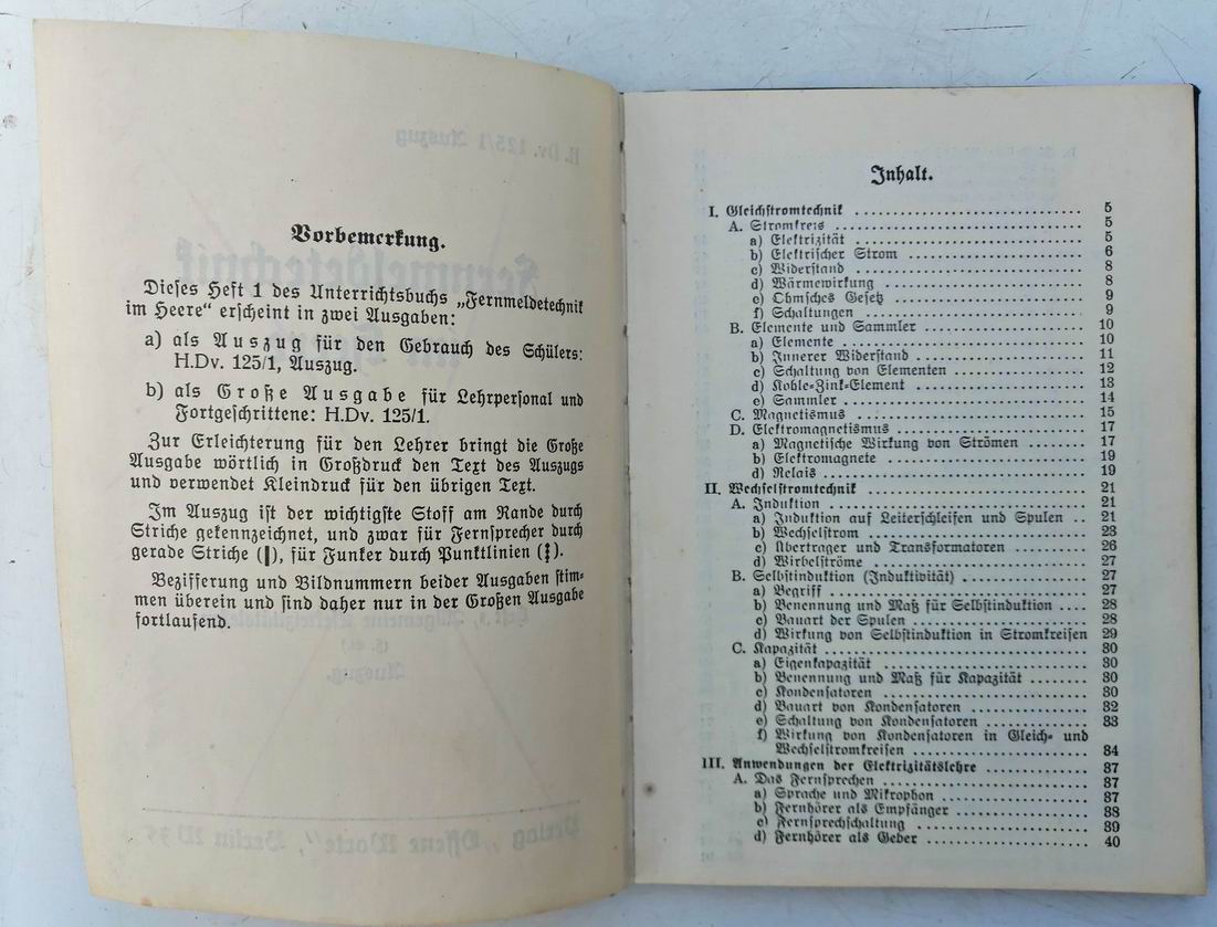 Оригинальное наставление "Fernmeldetechnik im Heere Heft 1 - Allg. Elektrizitätslehre".