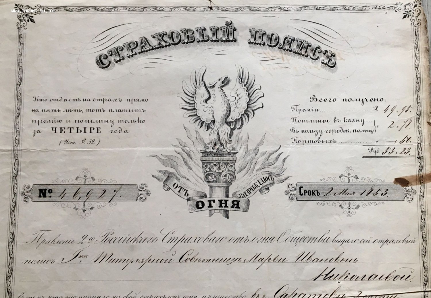 Оригинал. Редчайший полис.