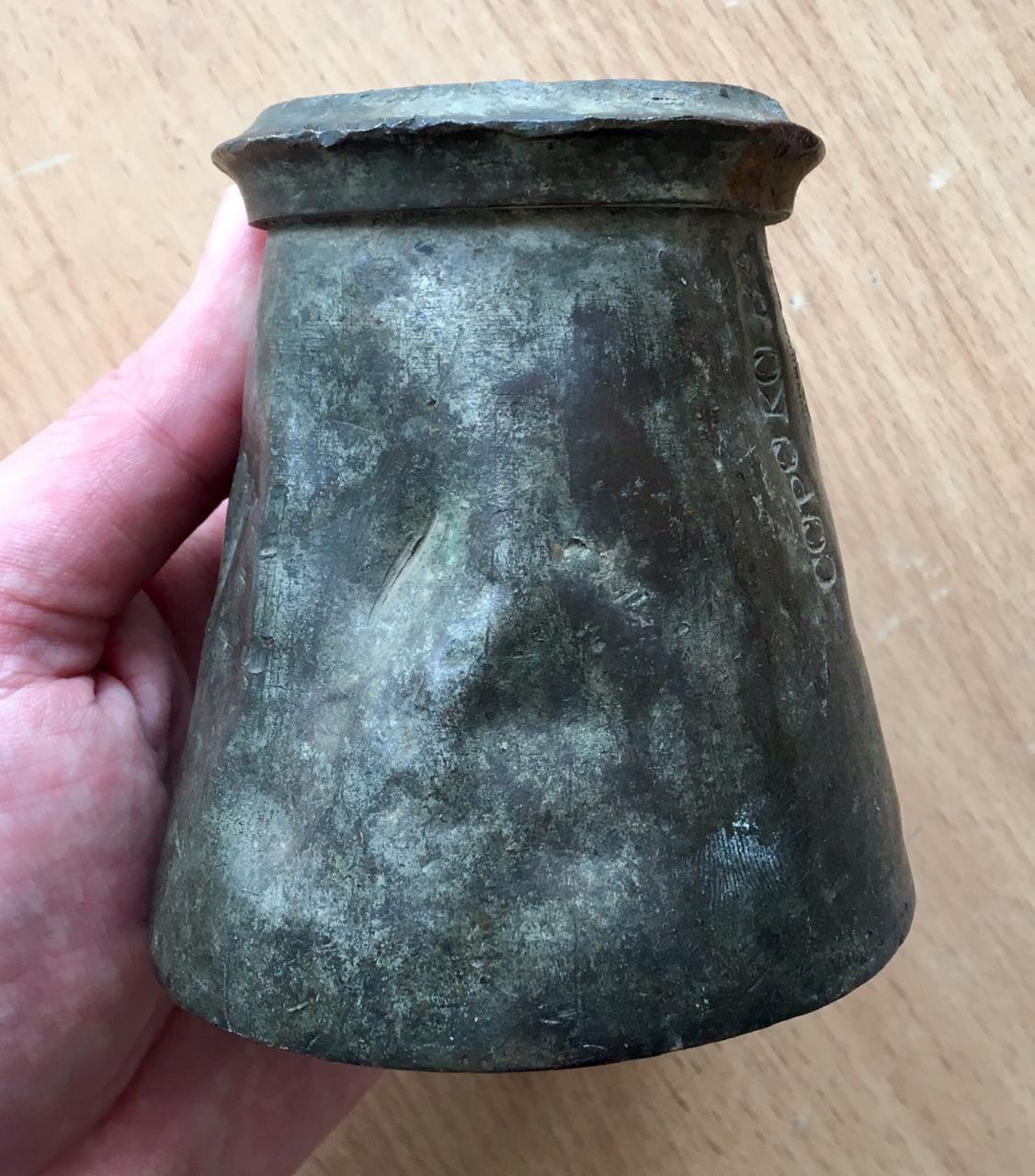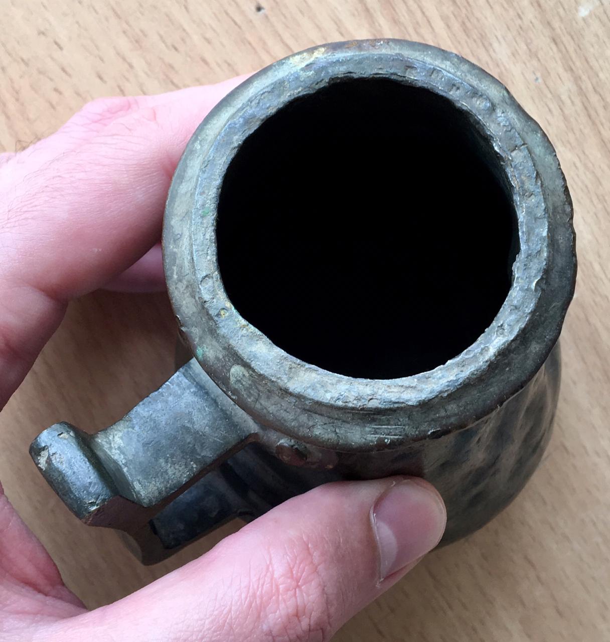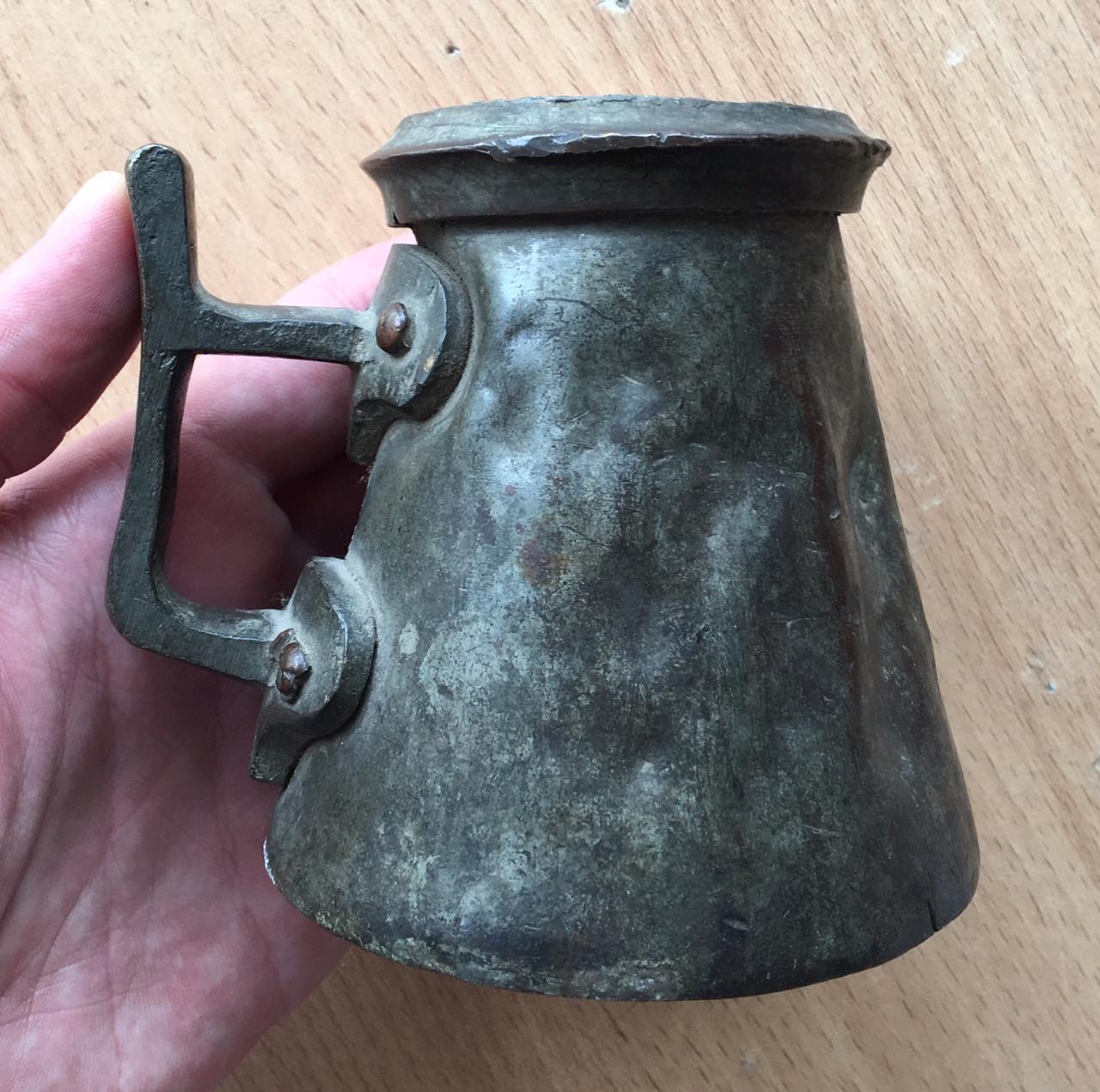Эта кружечка была очень распространена в 19 веке в Царской России. Когда в трактир входил посетитель, ею наливали водку прямо из ведра, стоящего на стойке.