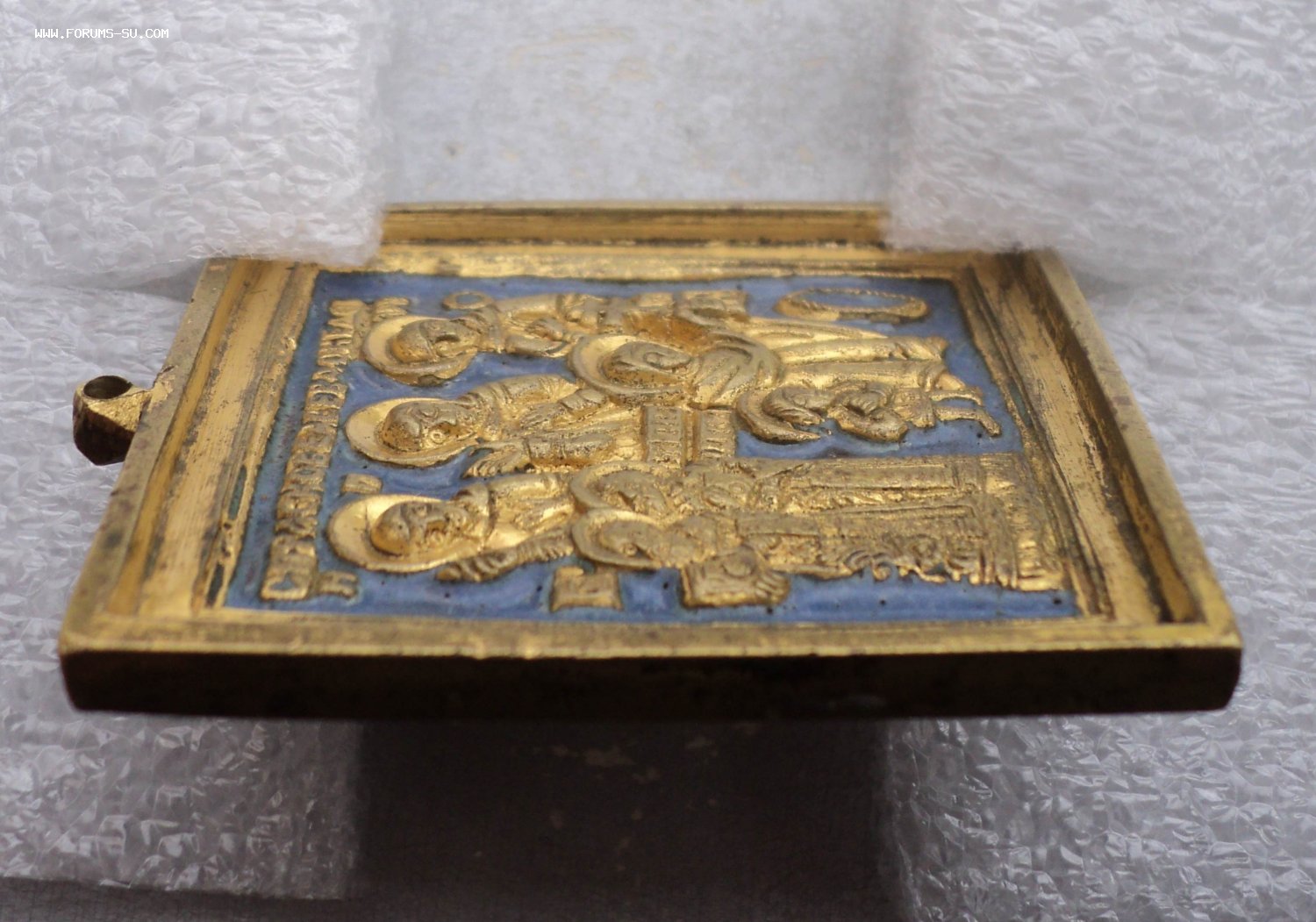 Местами потертости золочения, мелкие следы бытования, в ушке просверлено отверстие.
