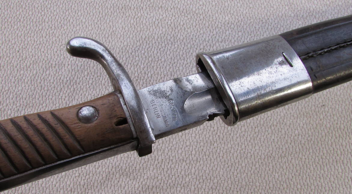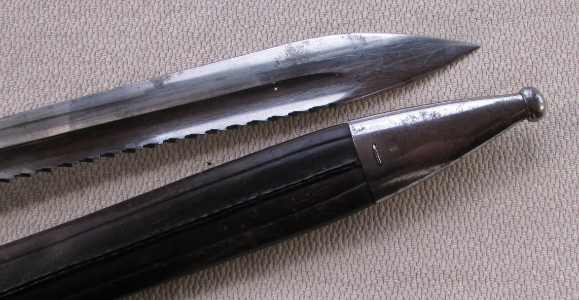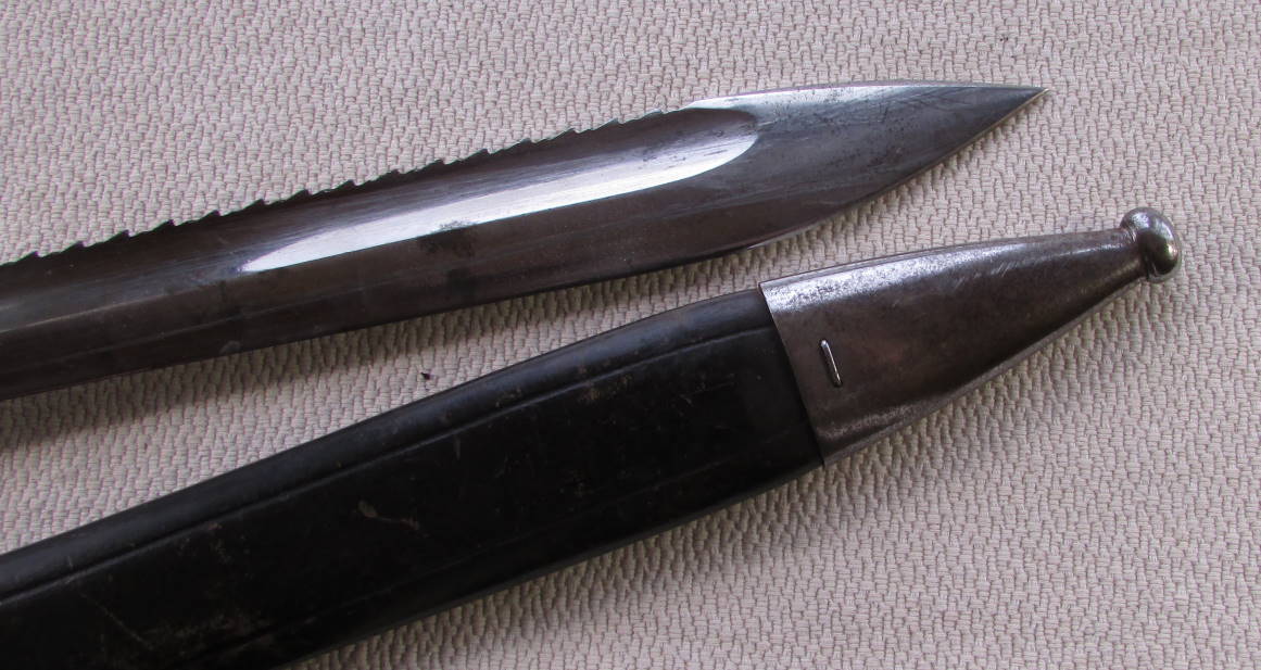 Клин никелирован, приборы ножен так же, покрытие старое, имеет начальные пятна коррозии.(потемнение металла)