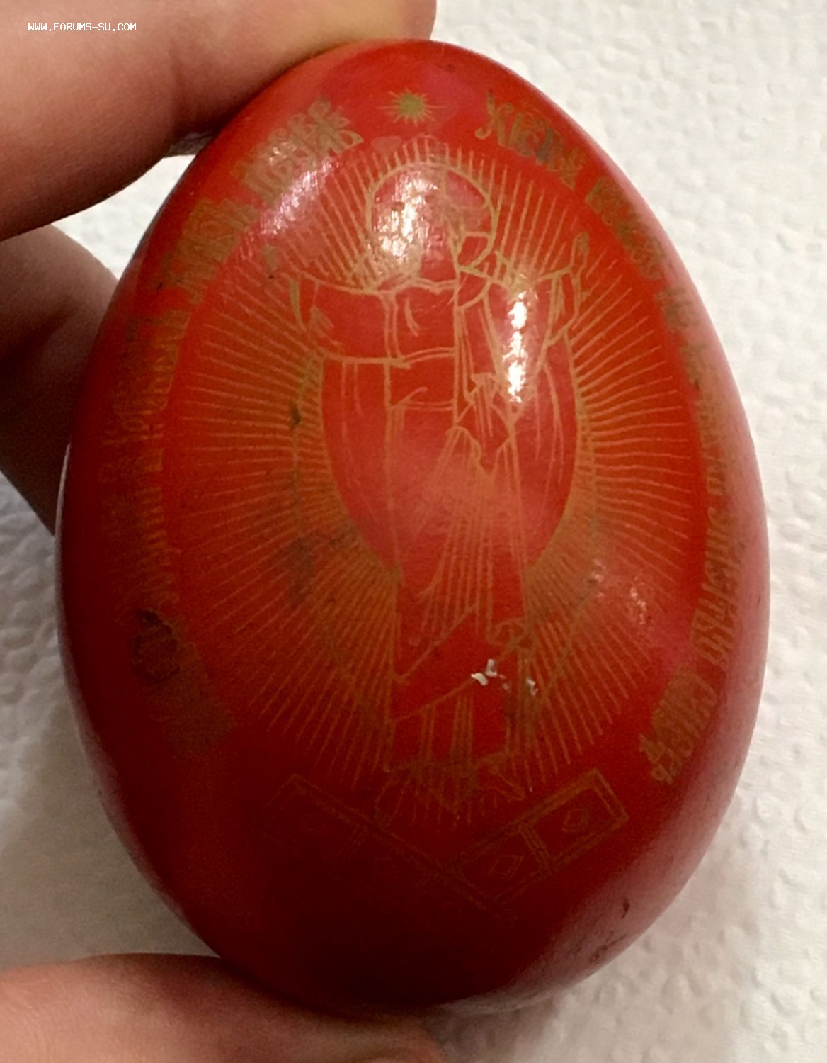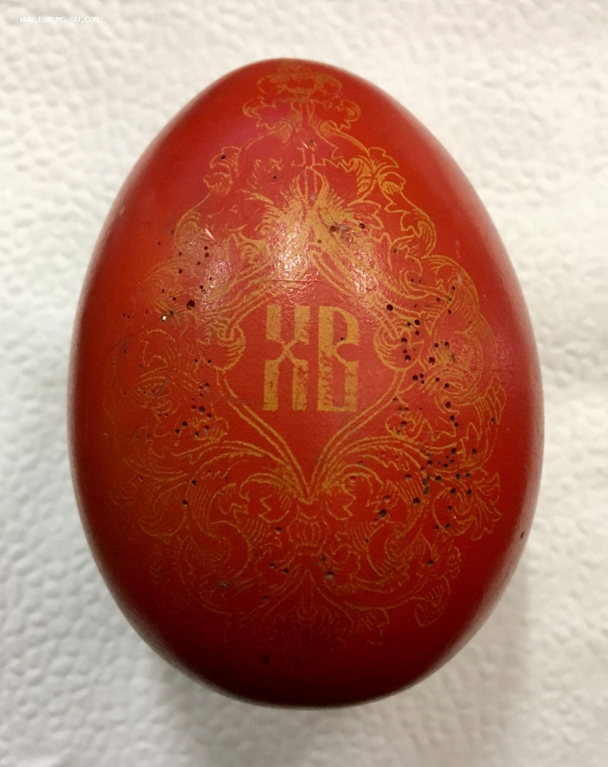 Оригинал до 1917 года. Пожизненная гарантия подлинности. Из чего сделано яйцо не совсем понятно. Яйцо тяжелое. Очень похоже на фарфор. На кончике под краской просматривается белый материал типа фарфора.