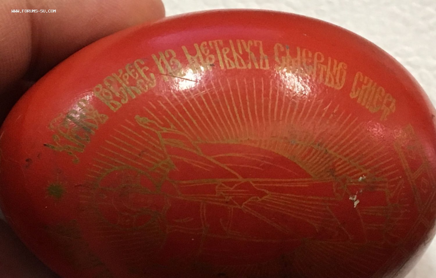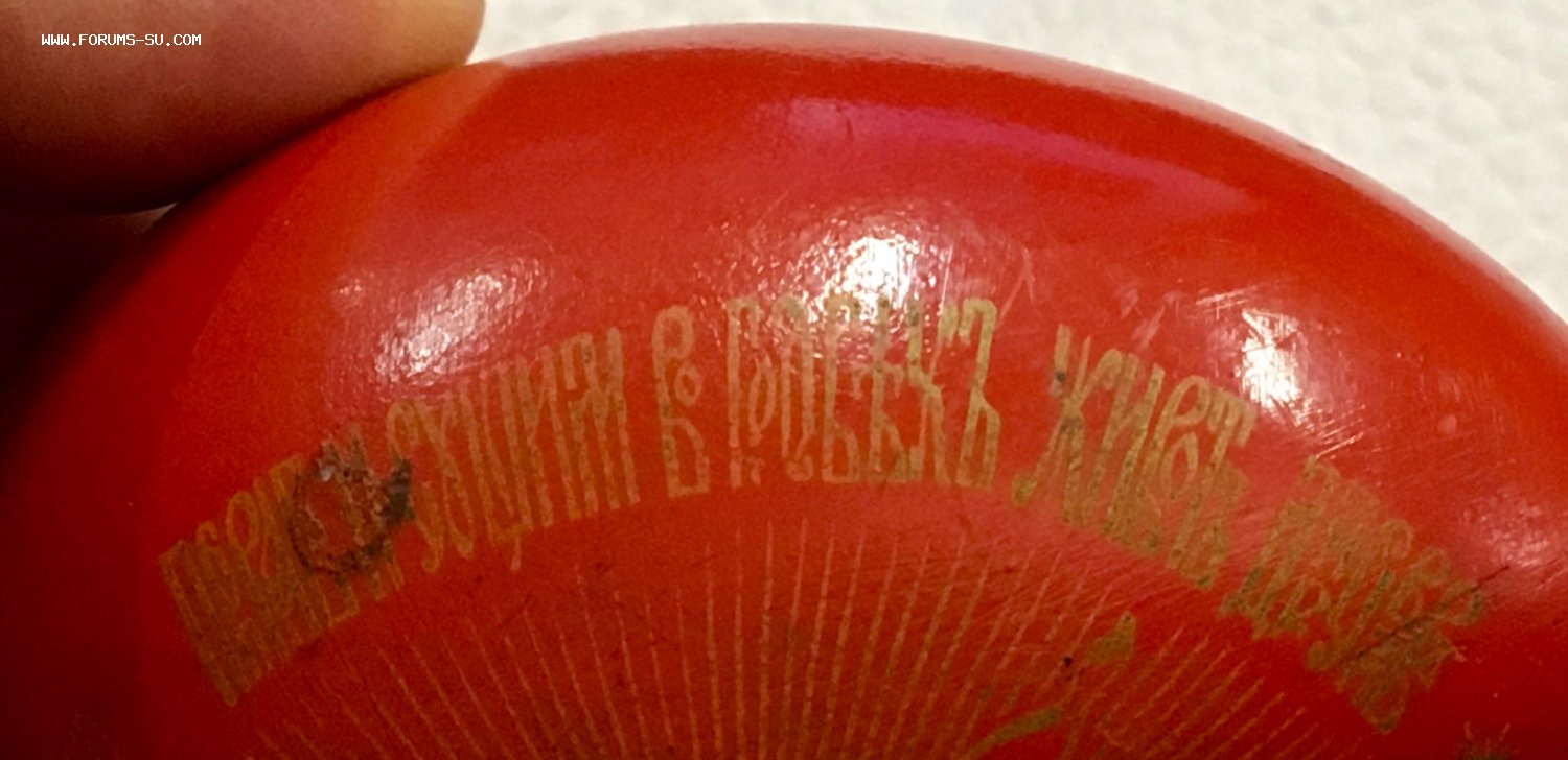 Пересмотрел много дореволюционных фарфоровых яиц, но с таким текстом не встречал.