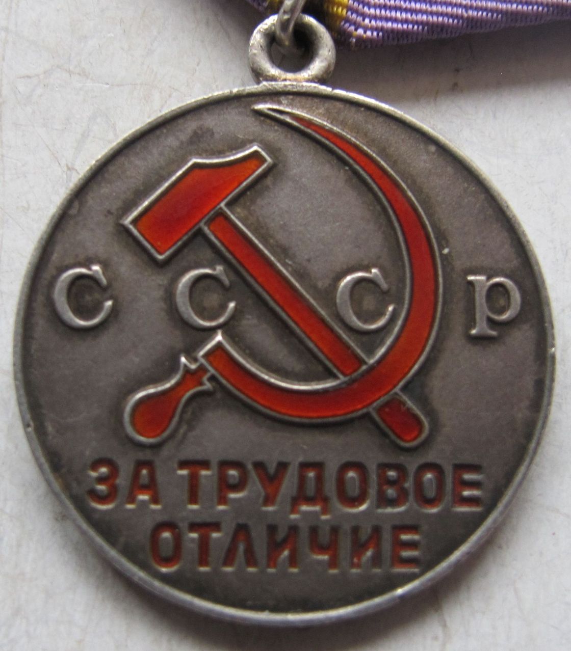 Самый редкий вариант медали с цельноштампованным ушком. Отличия от обычных: