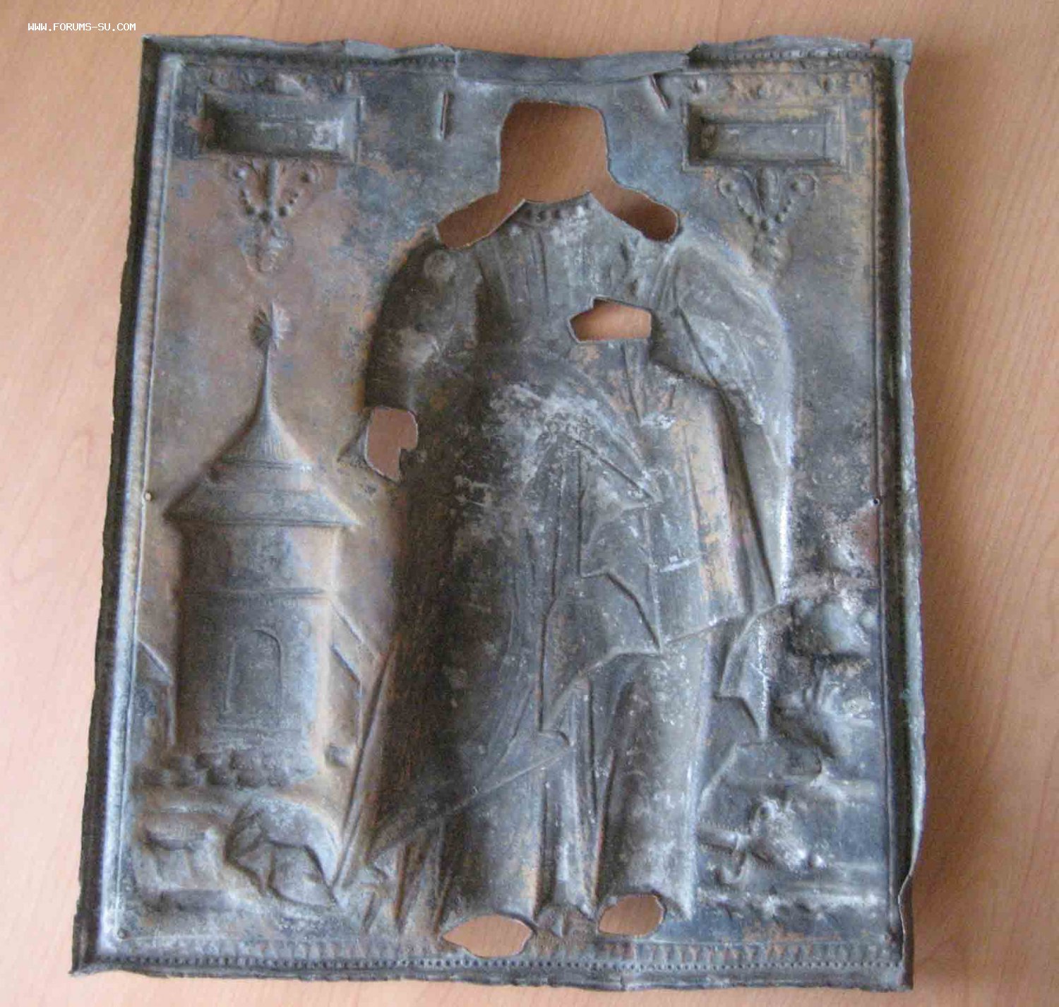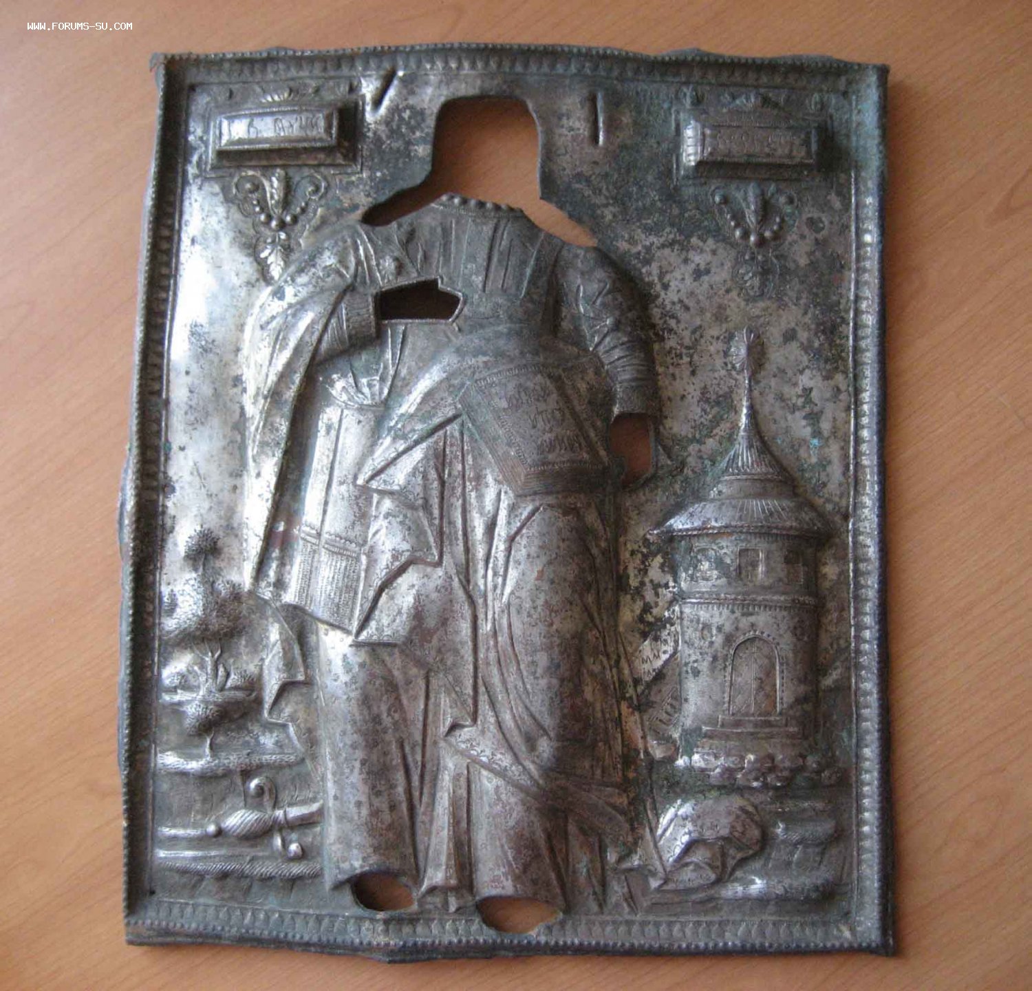 Предлагаю Вашему вниманию:Святая Великомученица Варвара. Оклад кованный. Посеребренный. Размеры: Высота - 34 см.. Ширина - 29см.. Оклад весьма толстый. Вес: 905 гр..