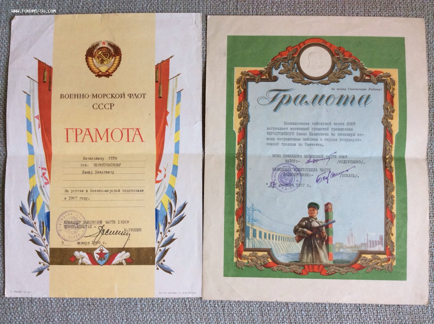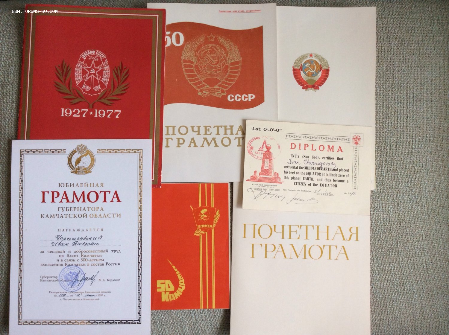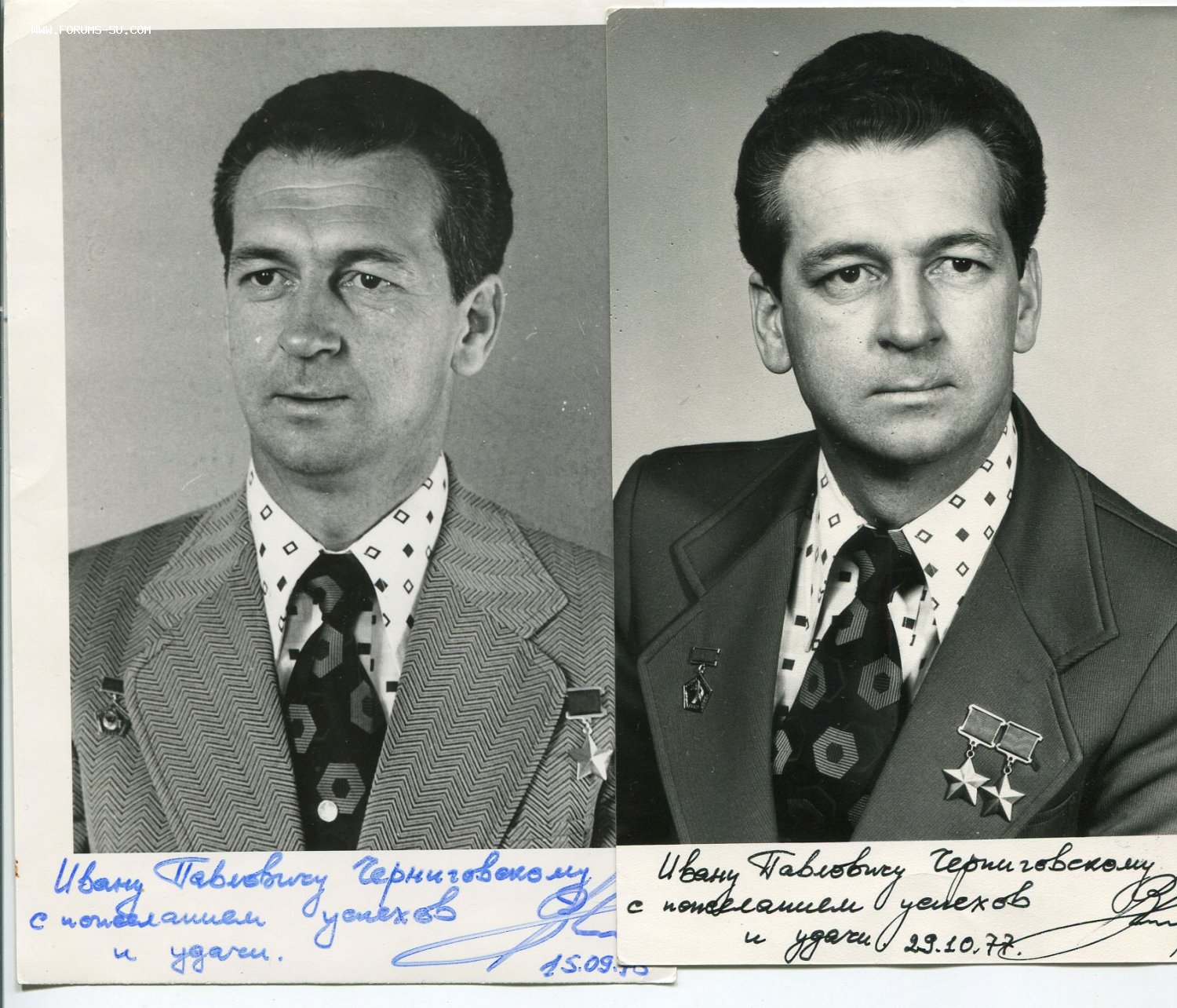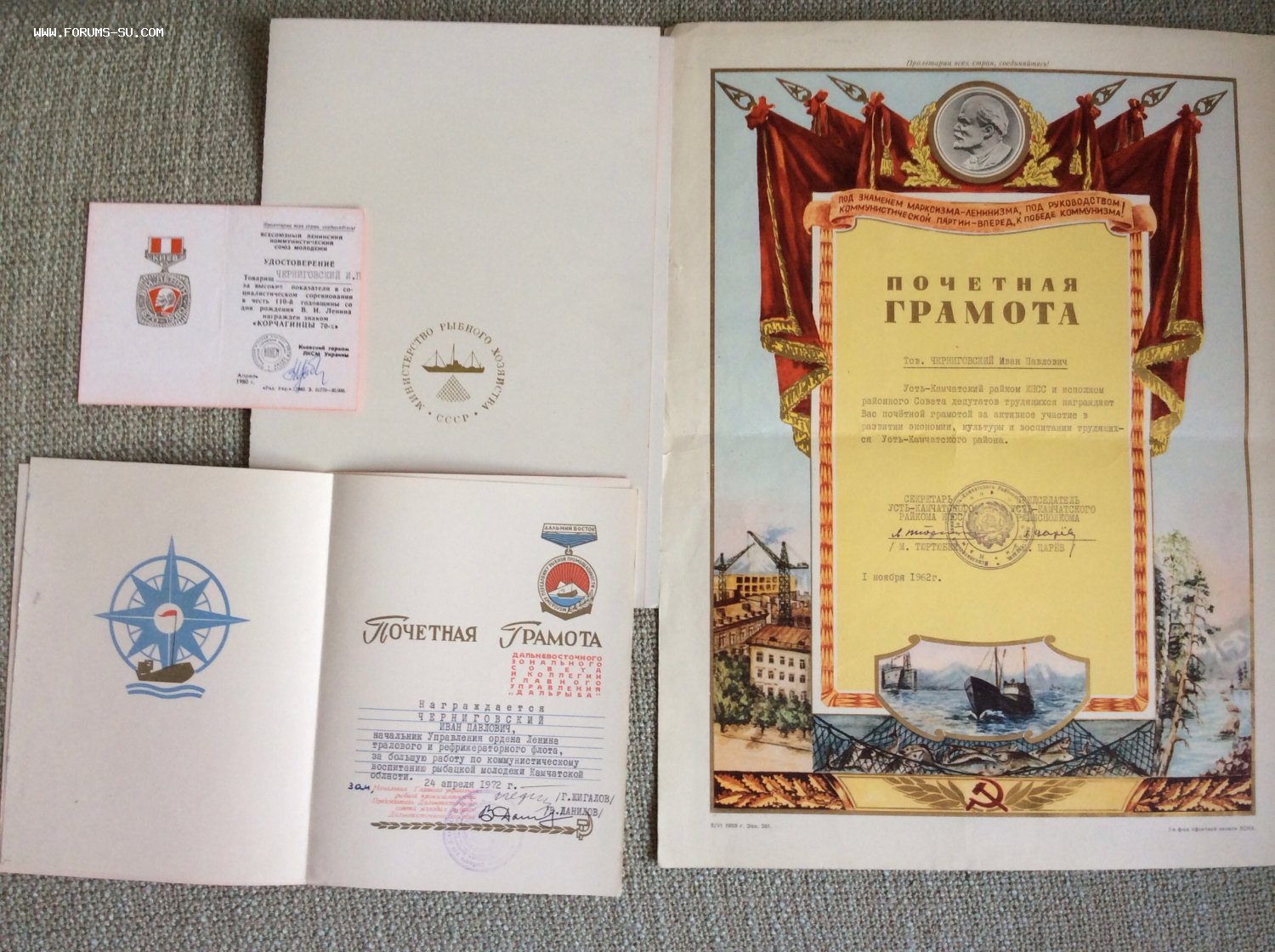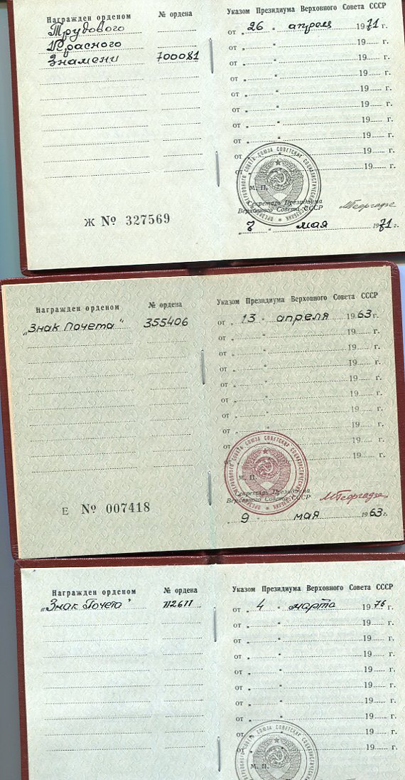 Знаки в ЛЮКСЕ. Кавалер занимал различные посты в рыболовном флоте на Камчатке. По роду службы встречался с различными знаменитостями и возил их на рыбалку. Пять фотографий с оригинальными автографами космонавтов Гречко, Севастьянова (2шт.), Стрекалова, Кизима и Макарова, Анатолия Карпова. Еще 17 фотографий космонавтов на формальных и не формальных встречах с рыбаками как любительских, так и профессиональных без автографов.