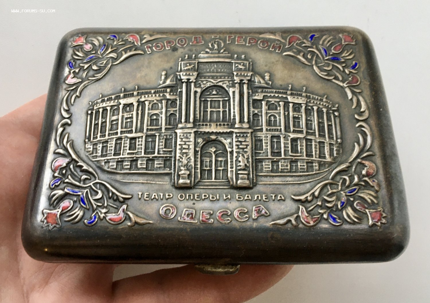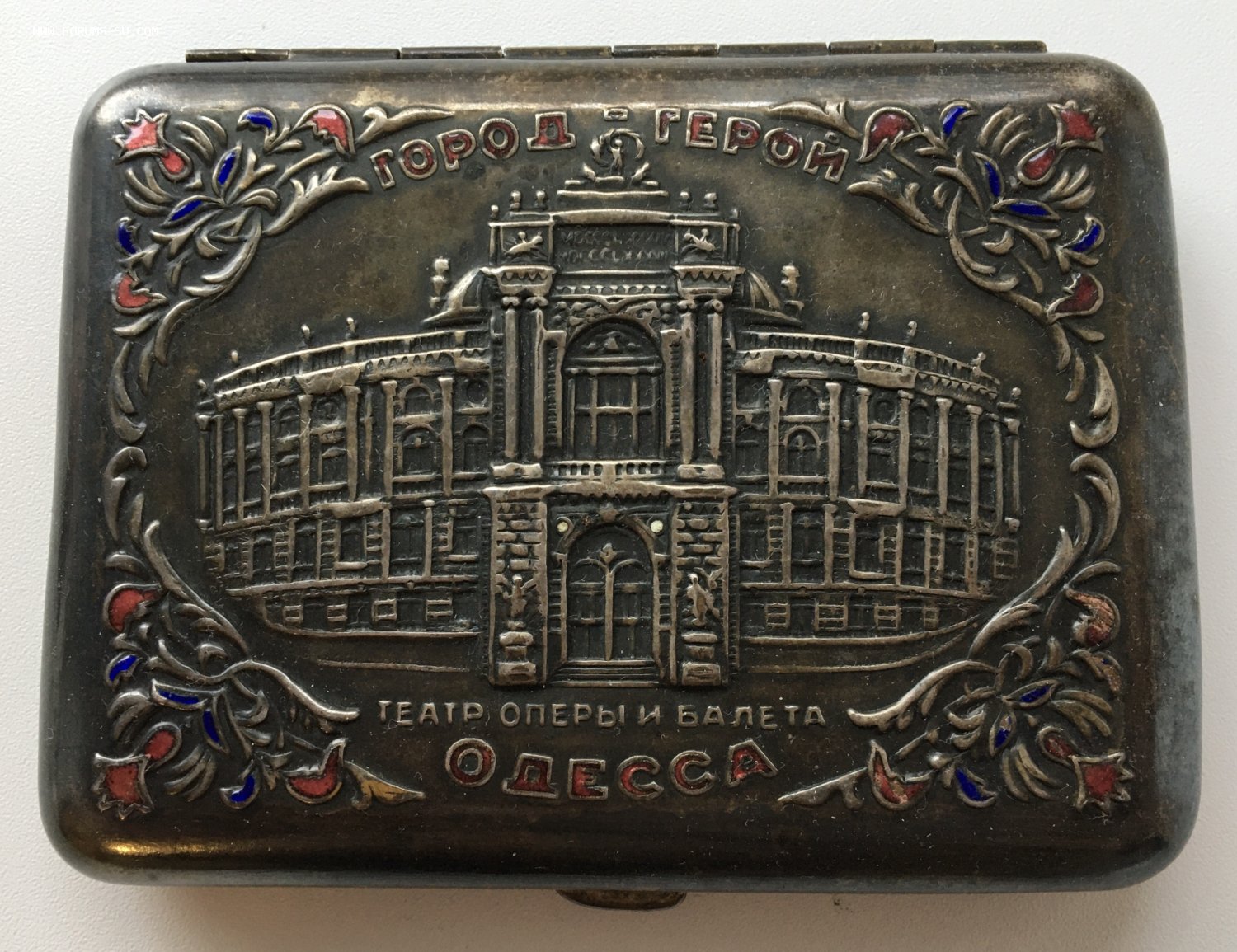 Портсигар в отличной сохранности. На фото показал сохранность со всех ракурсов. Все работает и защелкивается. Без вмятин и царапок. Пятна и запилы - ОТСУТСТВУЮТ. На эмалях есть несколько микрочешуек и трещинок (на фото показал).