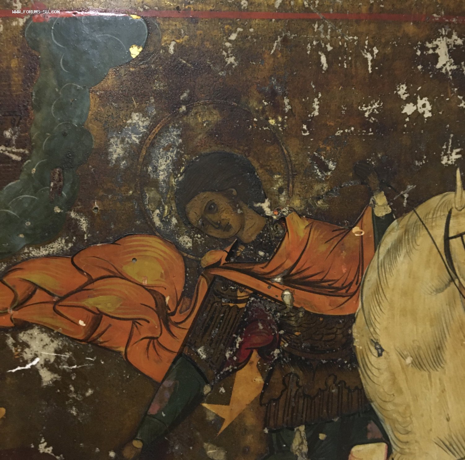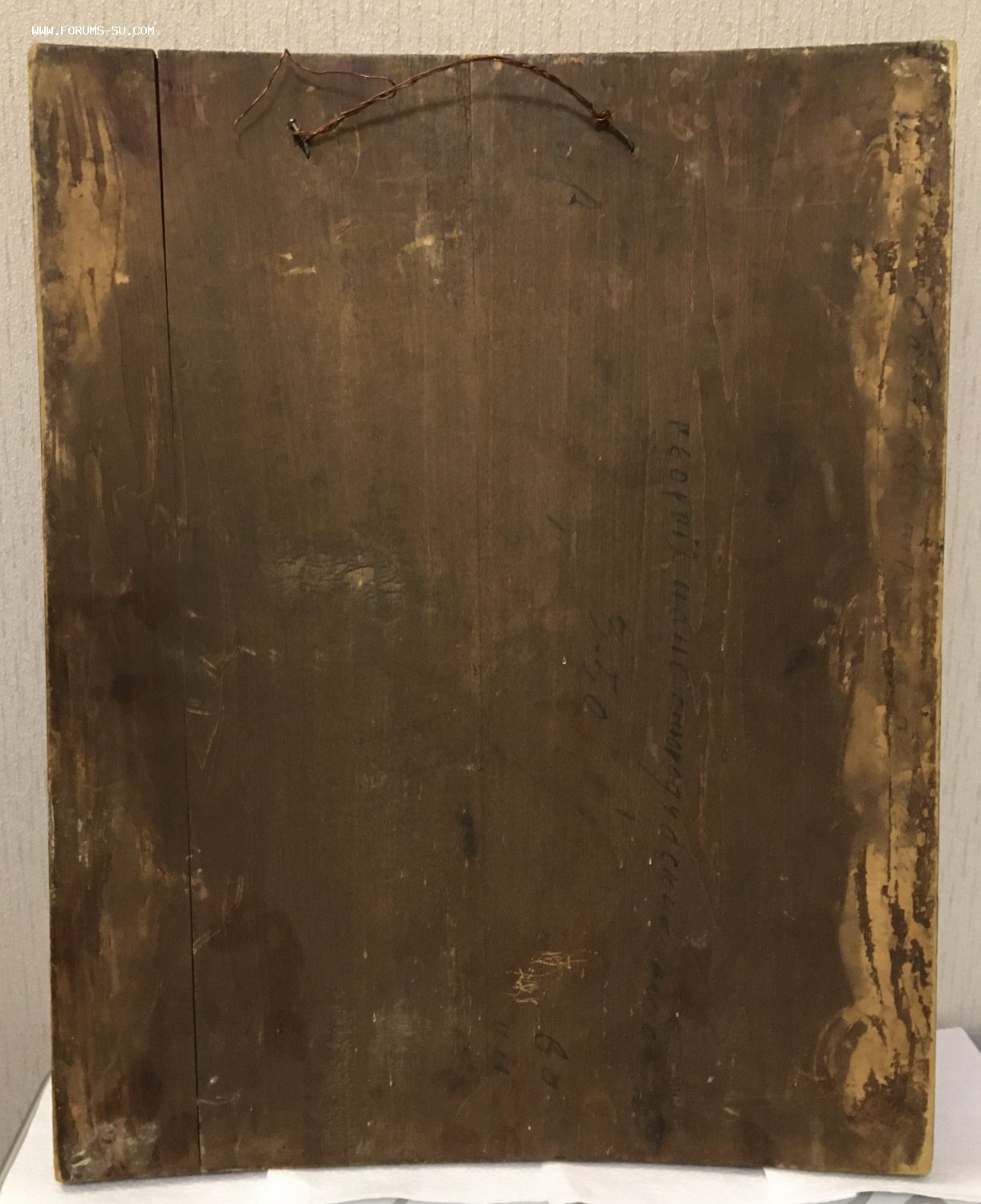 Под краской хорошо видно позолоту. Точные размеры иконы - 43,5 х 34,5 см, толщина 2,5 см. Пожизненная гарантия подлинности и отсутствия реставраций и подмазок.