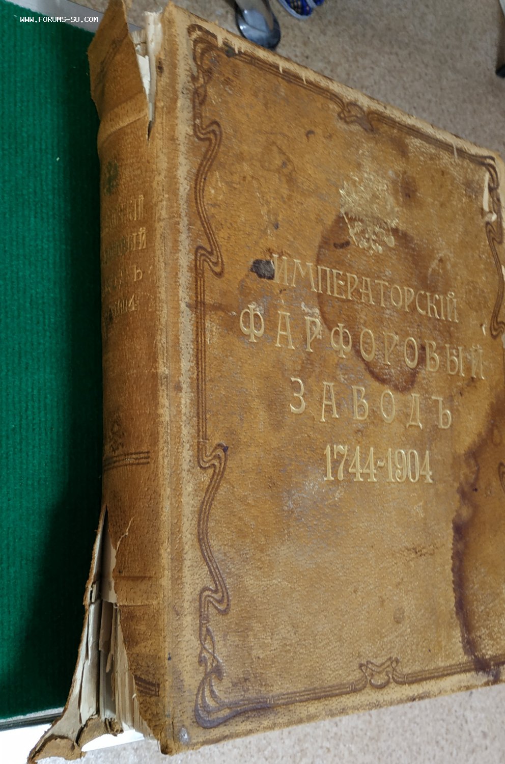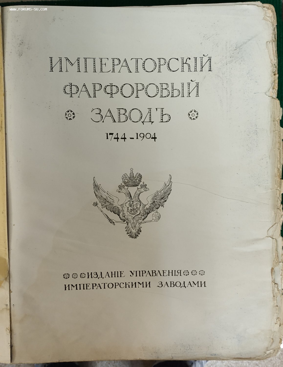 Фон-Вольф, Н.Б.] Императорский Фарфоровый завод.1744-1904: [Исторический очерк]. - [СПб.]: Управление Императорскими заводами, [1906]. - VIII, 422, 64 с.: ил., 1 л. фронт., 12 л. ил.; 38х30 см. (in-folio). Издание на мелованной бумаге. Иллюстрации выполнены в технике гелиогравюры, таблица с марками фарфора - в технике хромолитографи ,,,Состояние,обложка отходит от блока,первые 8стр истреплены,последние 7 истреплены,,3 кальки не хватает,мпц 45тыс,руб