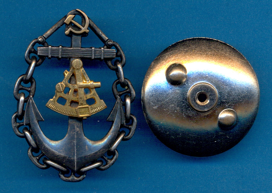 Знак - Капитан (Штурман) дальнего плавания, с золотым секстаном, серпом и молотом СССР