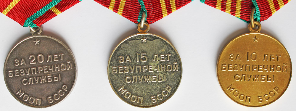 Полный комплект медалей "За безупречную службу МООП Белорусской ССР". 10 лет выслуги, 15 лет выслуги, 20 лет выслуги. Все медали в отличном коллекционном состоянии. Эмали отличные, позолота вся на месте. 100% гарантированный оригинал. В коллекцию.