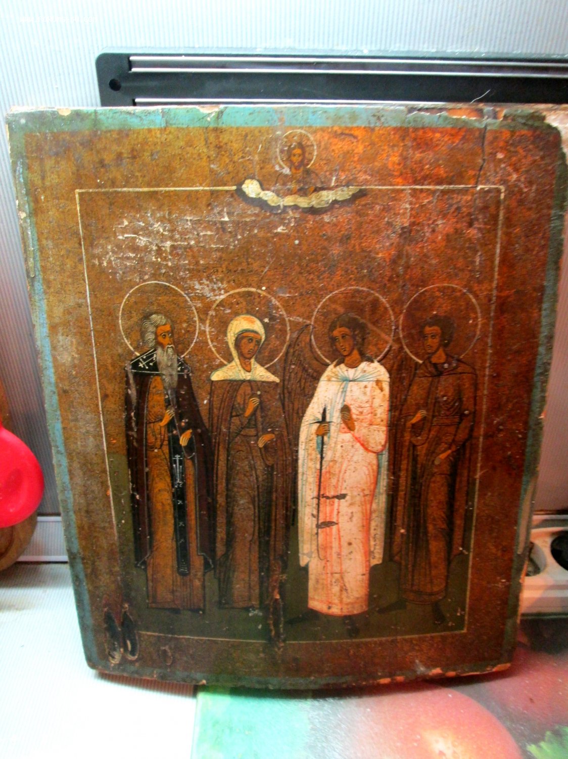 Икона Избранные Святые. Живопись 19 век на серебре или олове. Без реставрации. Доска без жука. шпонки торцевые.