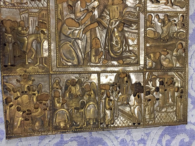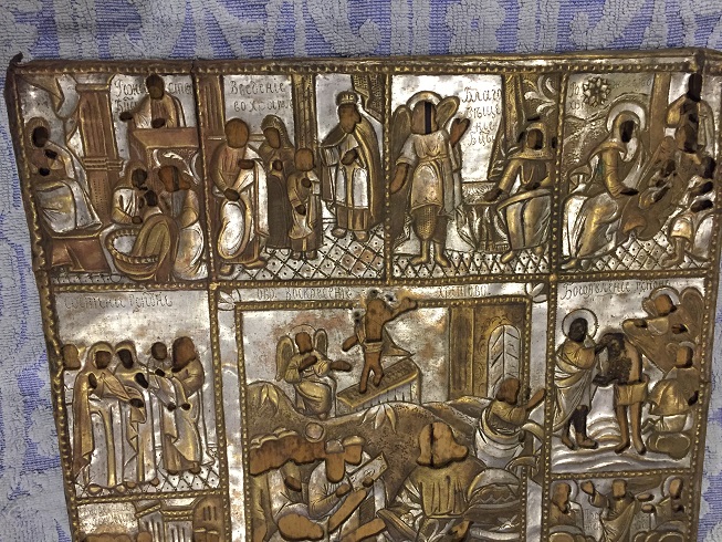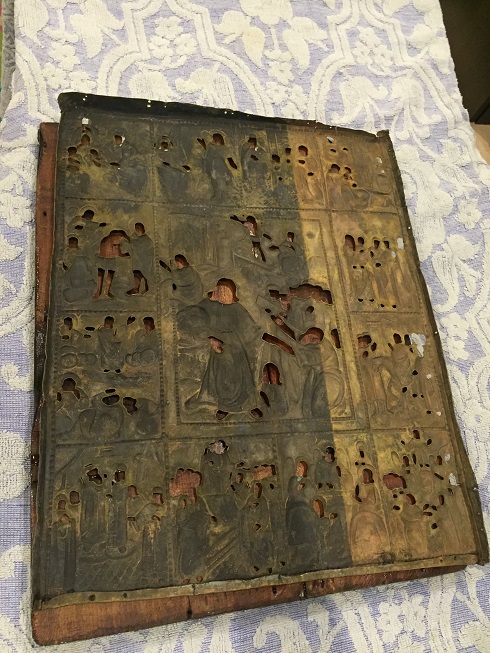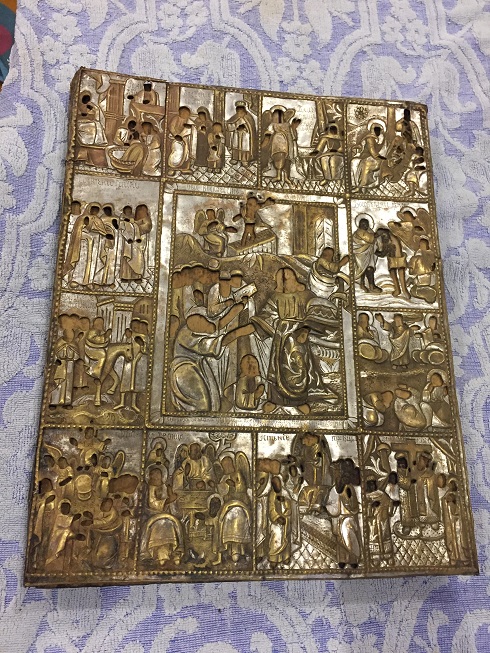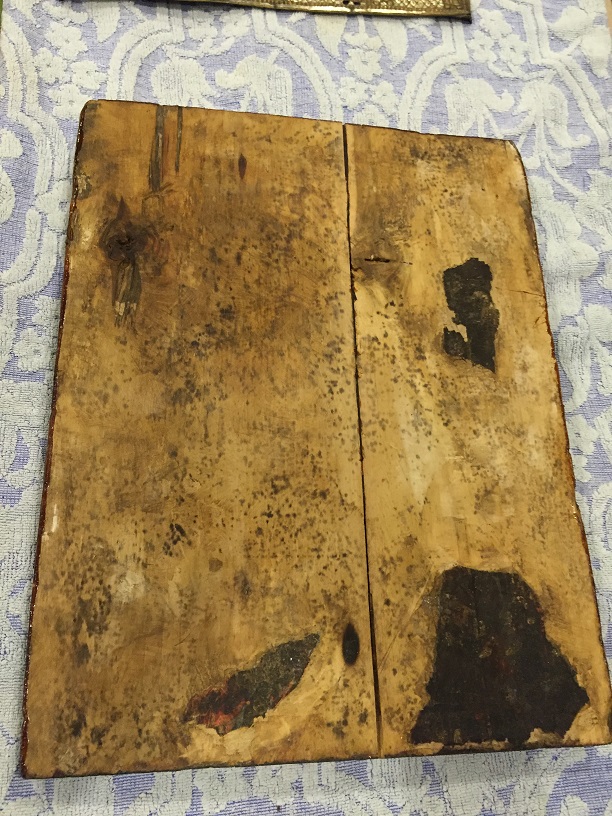 Вот такая икона, родная доска двойные шпонки и неплохой старинный оклад, размер 45.5х35х 2.5см
