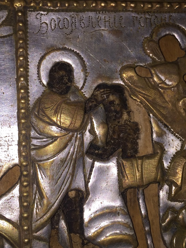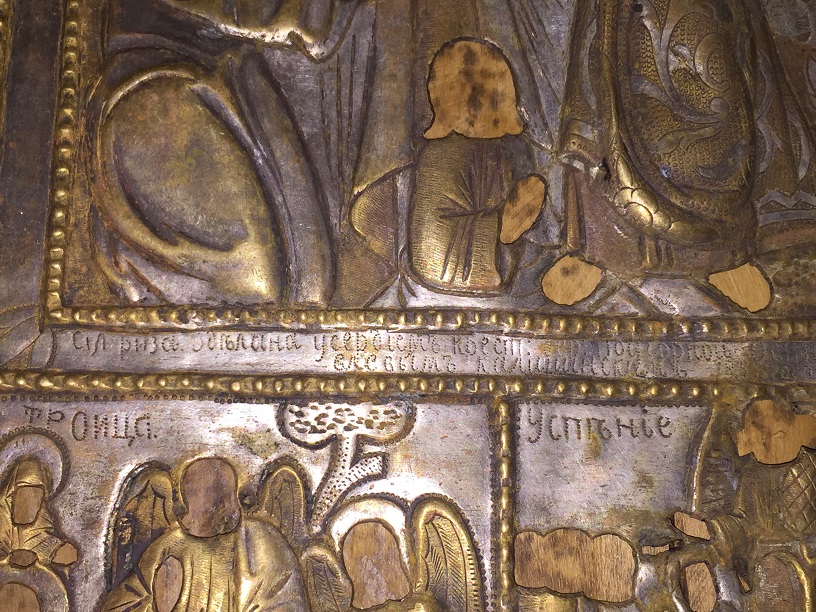 Надпись на окладе: Сия риза сделана усердием крест. дер.Подгорной Осипом Яковлевым Калининским 1855года МПЦ 5тр почта 500р