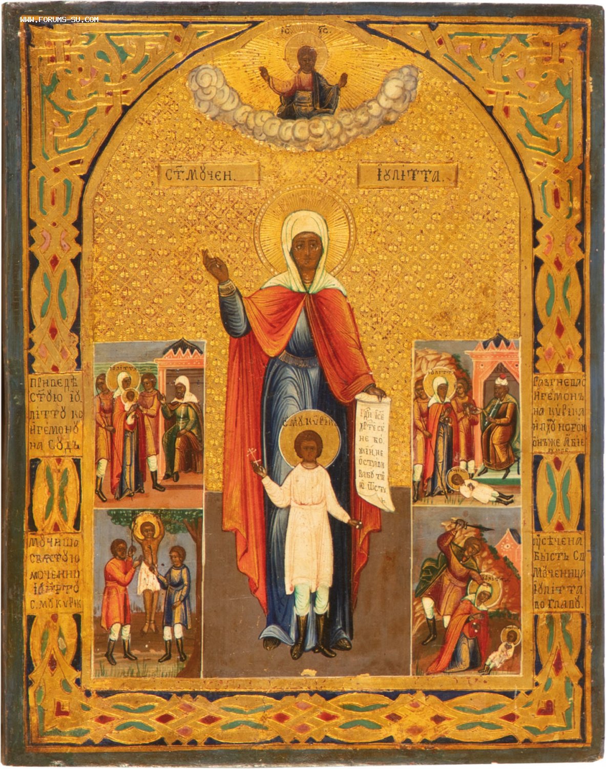 В продаже Икона "Кирик и Иулитта с клеймами жития" Размер 21.5х17.5 см. Печать. На золоте.