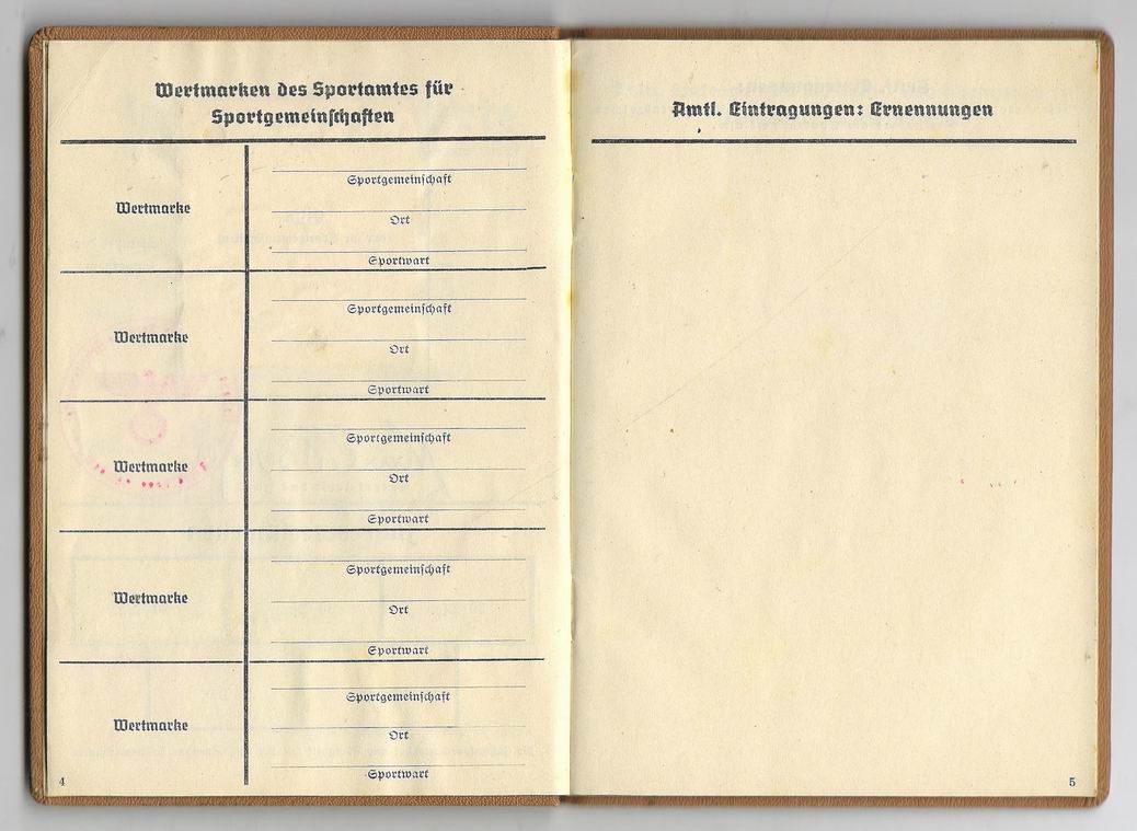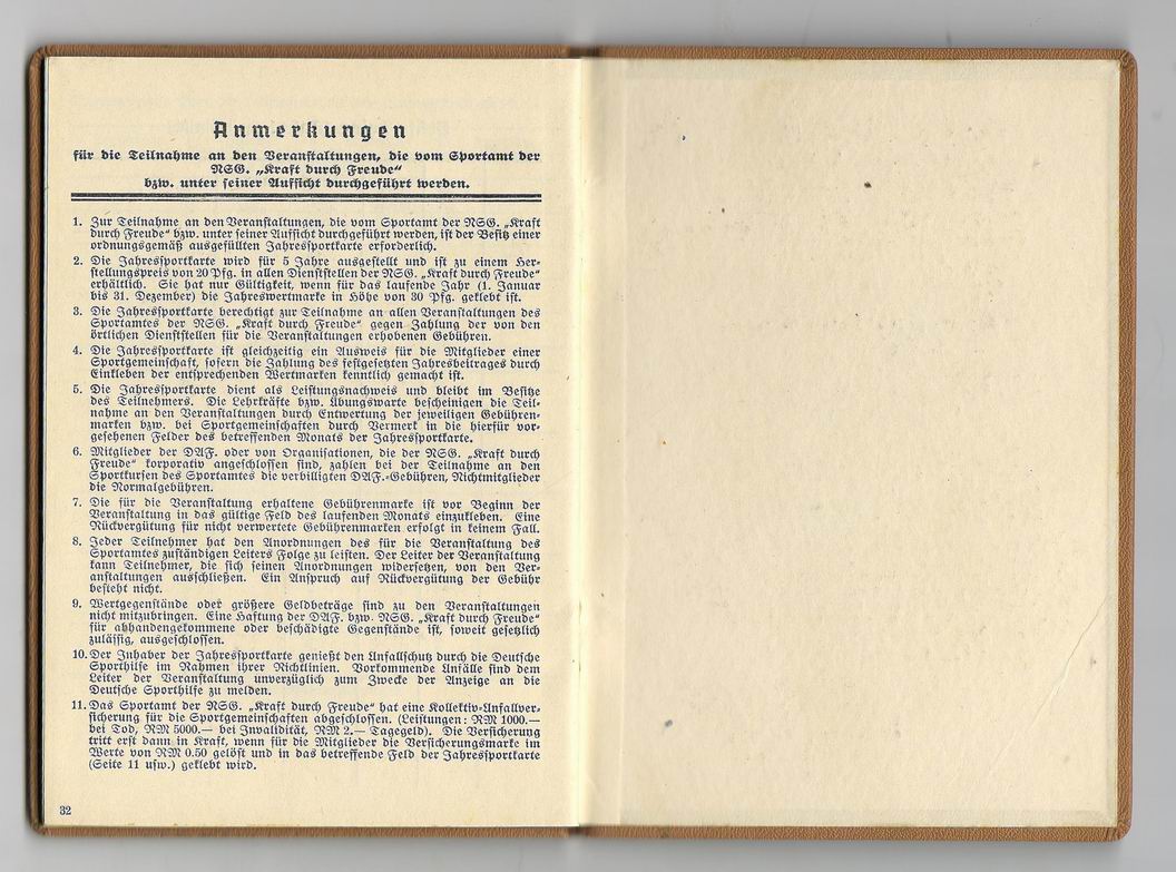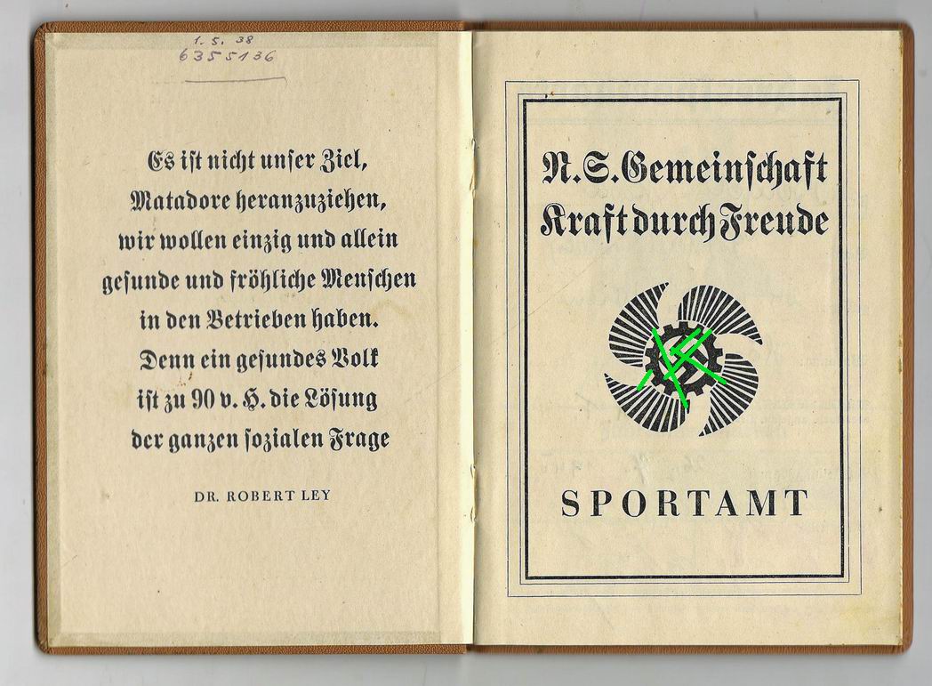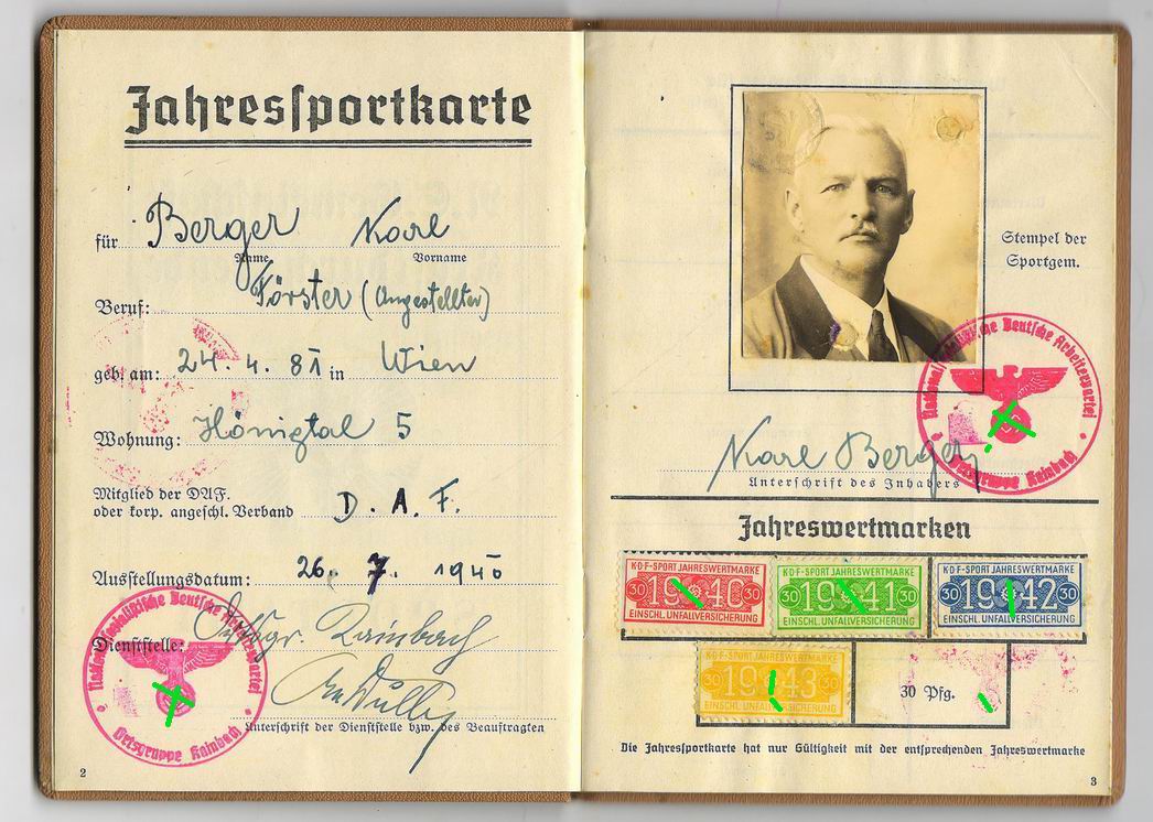 Оригинальная спортивная карта (Jahressportkarte) немецкого трудового фронта DAF.
