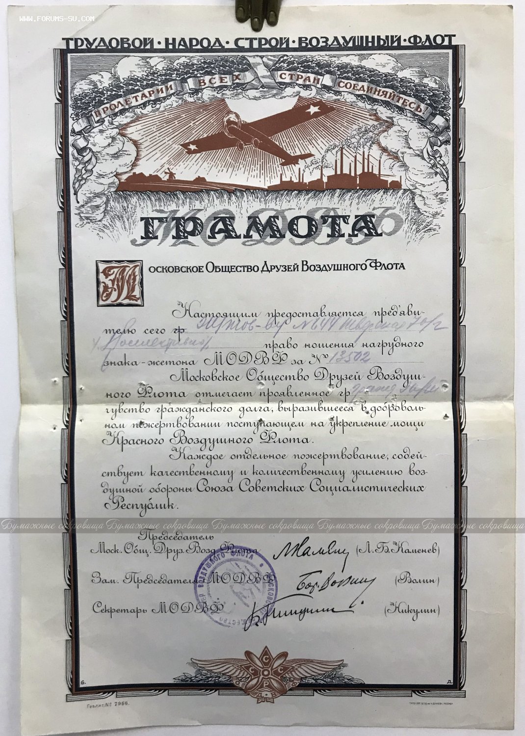 Грамота ОДВФ Каменев RRR knoflikus - 24 дек 2019 14:29.11 × Мини профиль пользователя knoflikus Сообщения: 199 Зарегистрирован: 03 июл 2017 13:34.55 Откуда: Москва Статус: Не в сети - 24 дек 2019 14:29.11 #6394701 Размер грамоты 277 х 403 мм. Факсимильная подпись Каменева. Интересно, что грамота выдана на организацию. По РФ Фото