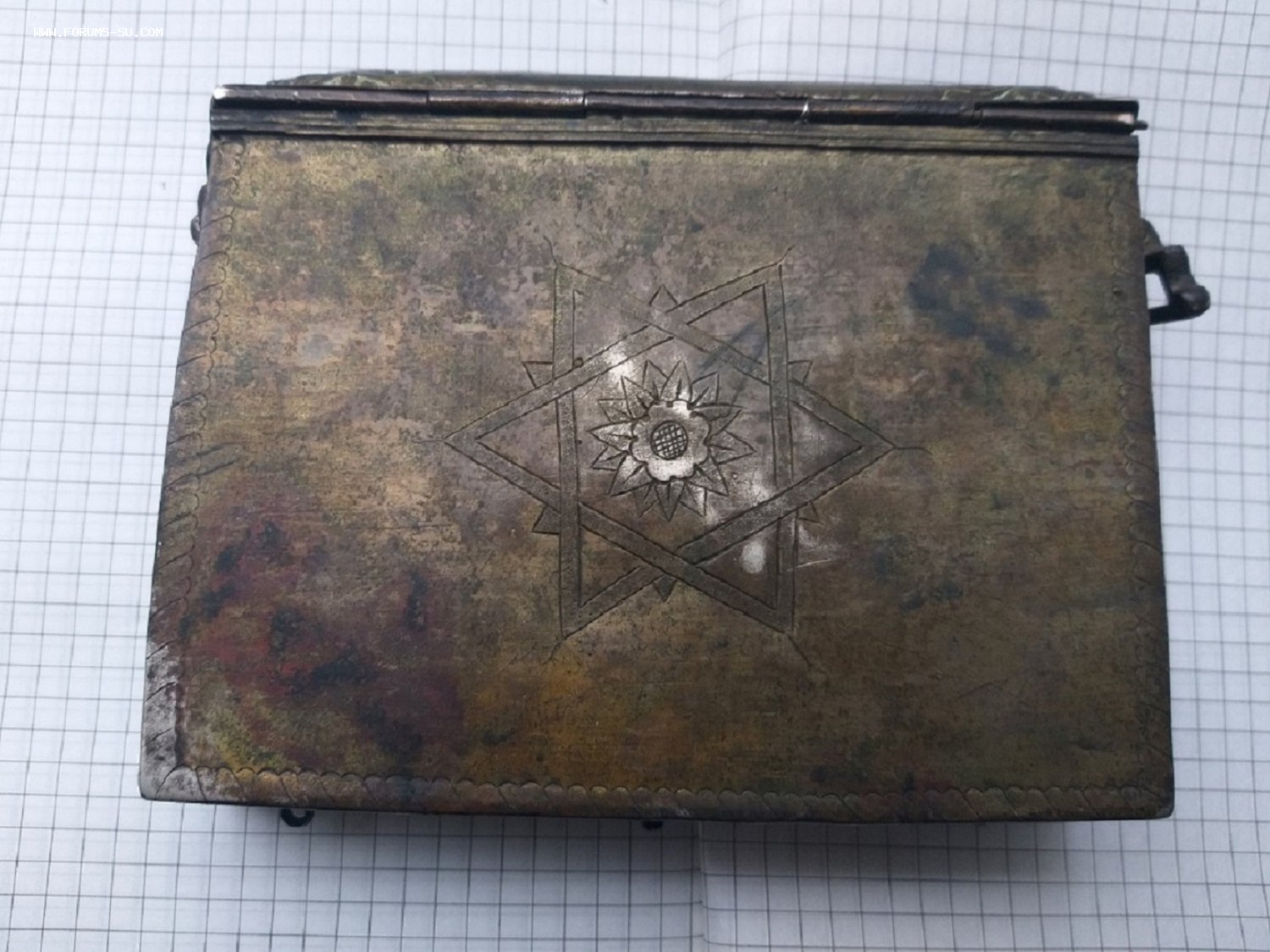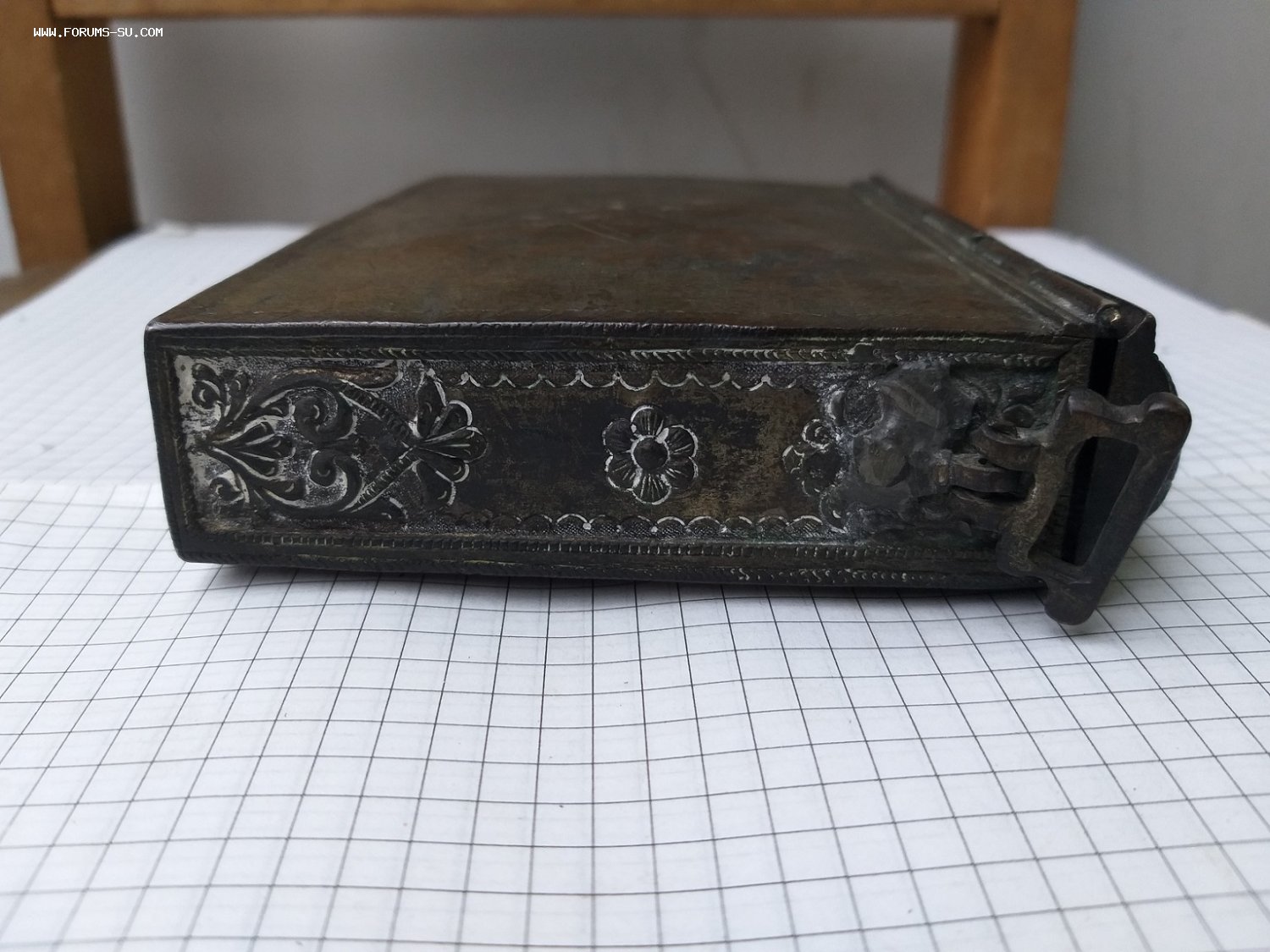 Размер 13,5 на 10,5 см. Толщина 3 см. Открывается, есть крепления для ремешка и для подвесок. Под патиной белый металл, не магнитится , не серебро. Состояние видно по фото. По РФ. Предложите. Похожая есть в музее в Царском Селе.