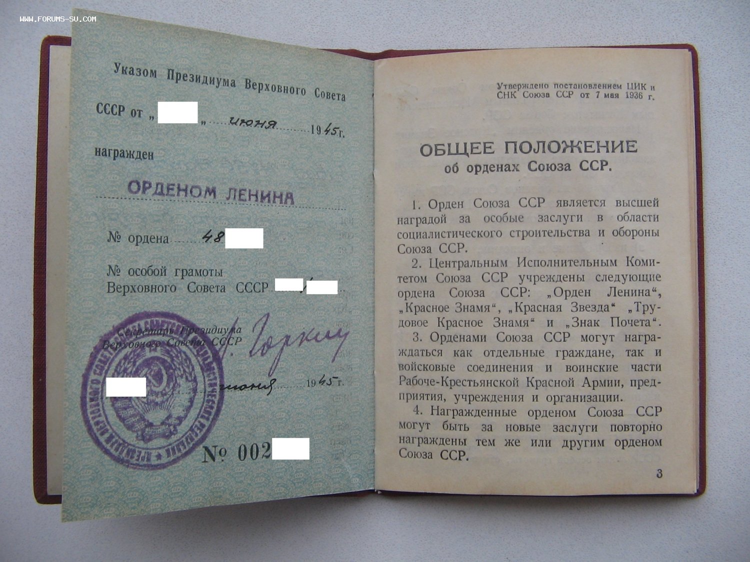 ОЛ награждение за ВОВ. Редкий документ с указанием номеров грамот. (грамот нет)